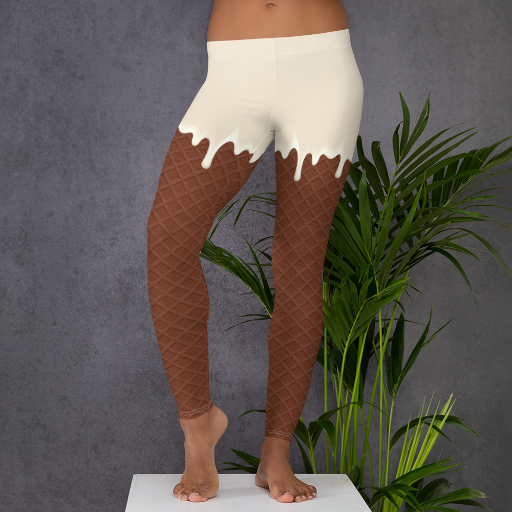 Waffle Ice Cream Leggings - Melting Ice Cream Yoga Pants - Ice Cream Party Pants