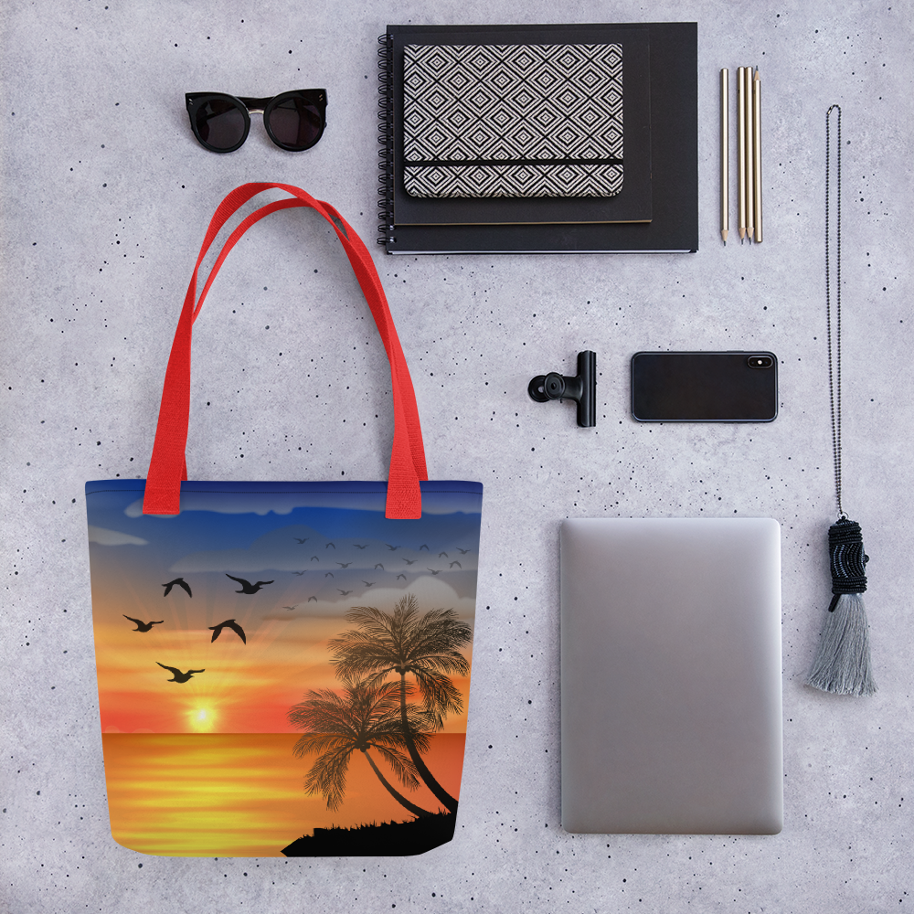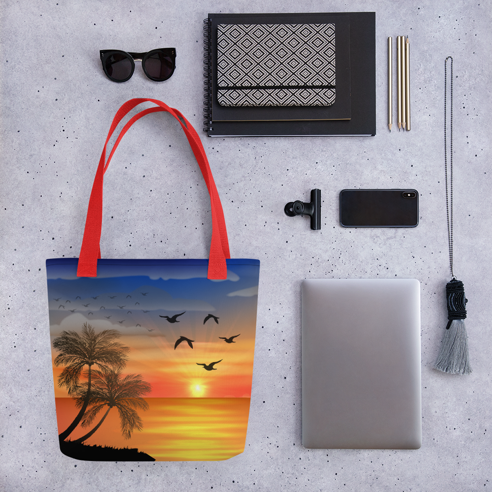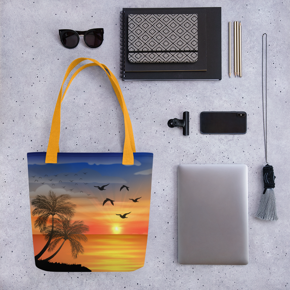Hot Summer Tropical Landscape With Palm Trees & Birds Tote Bag