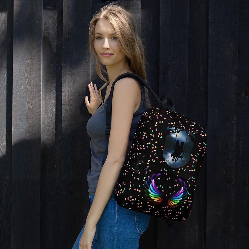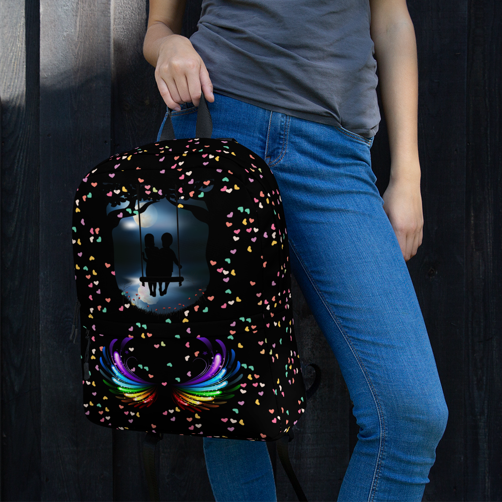 Romantic Girls and Boys Play the Swings with Colorful Hearts Backpack