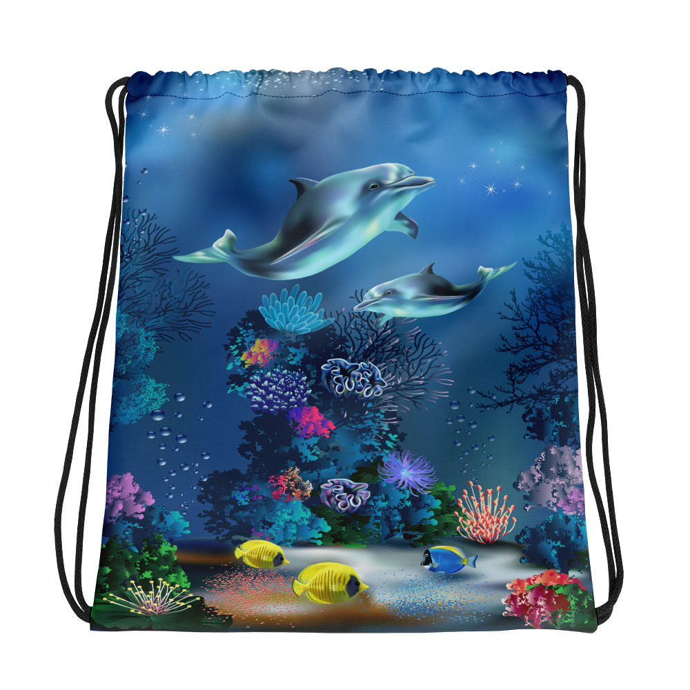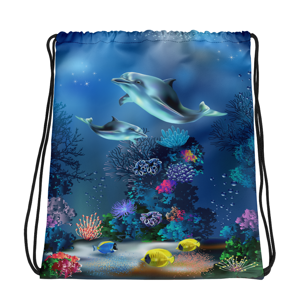 Trendy Fashionable Underwater Dolphins World Drawstring bag