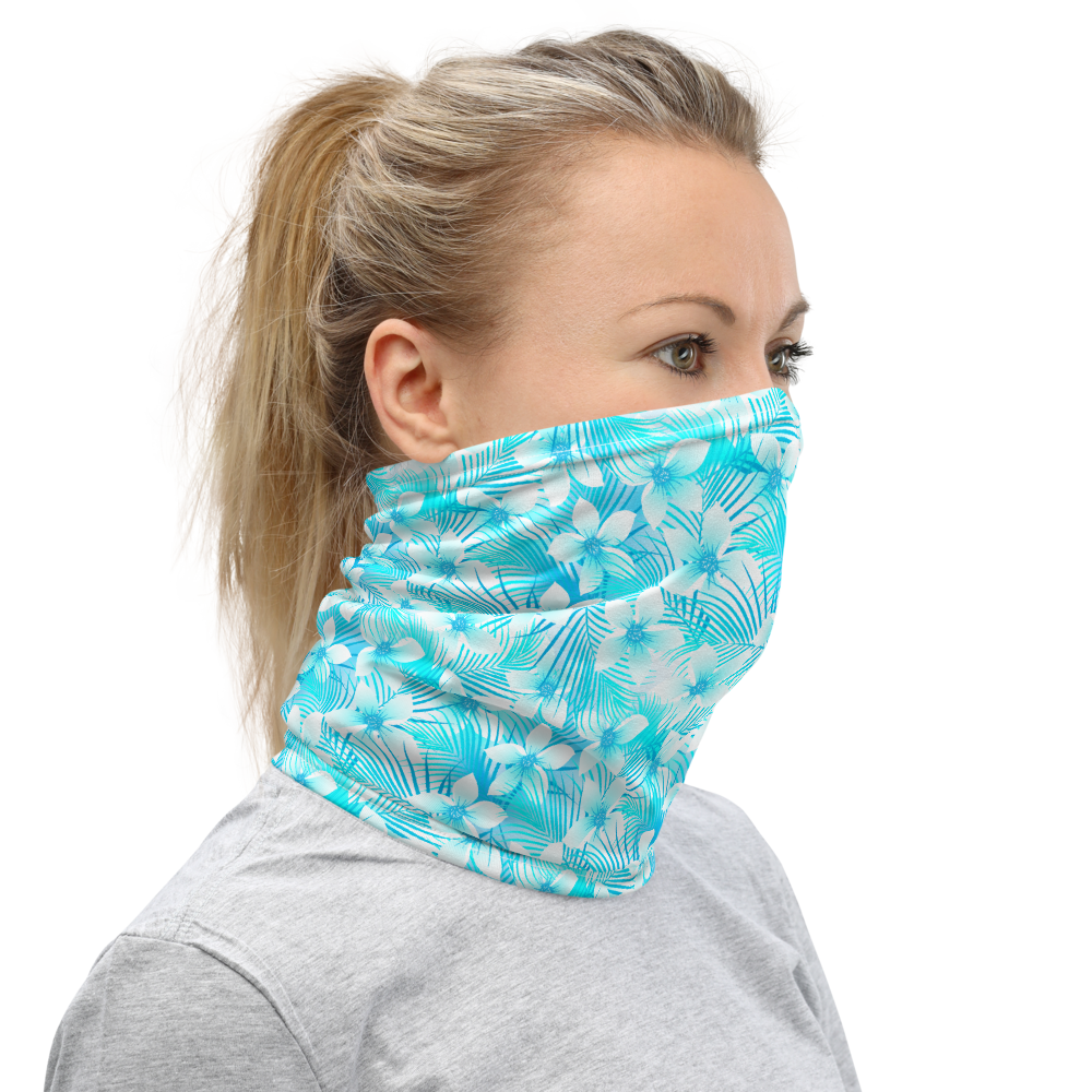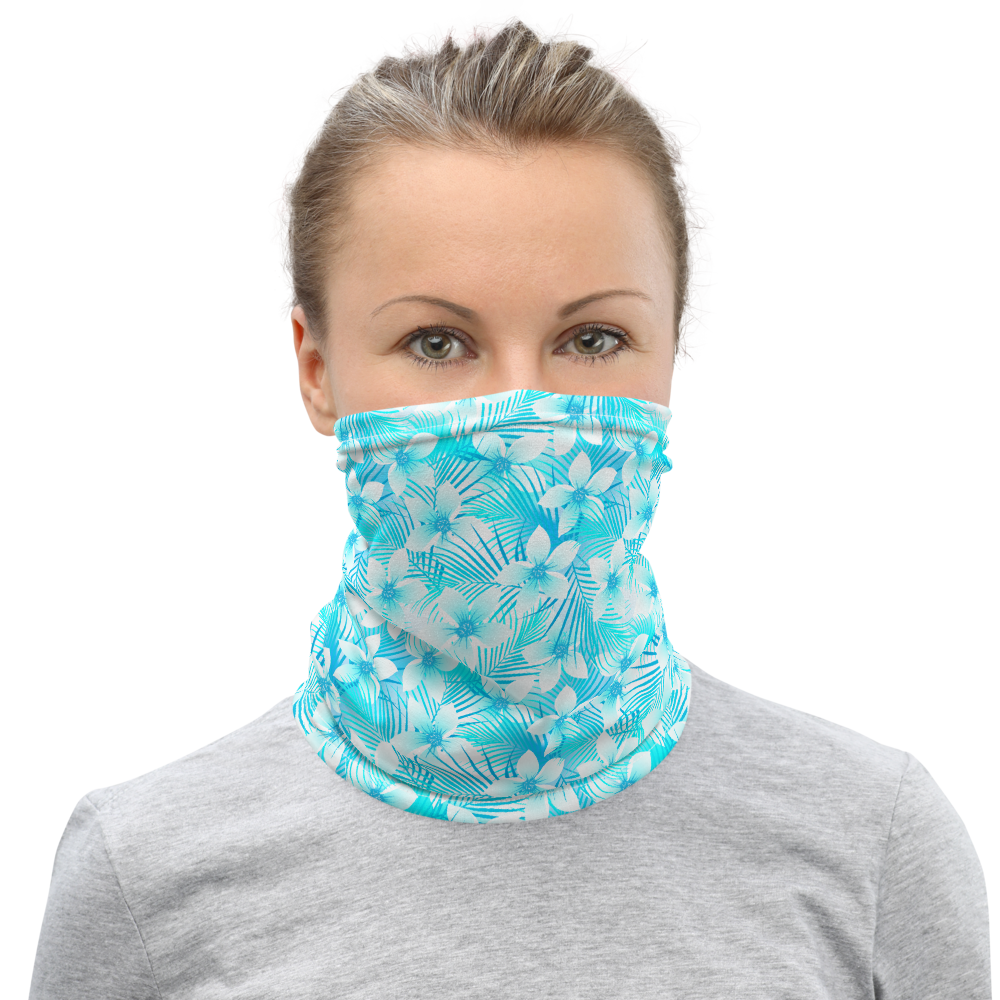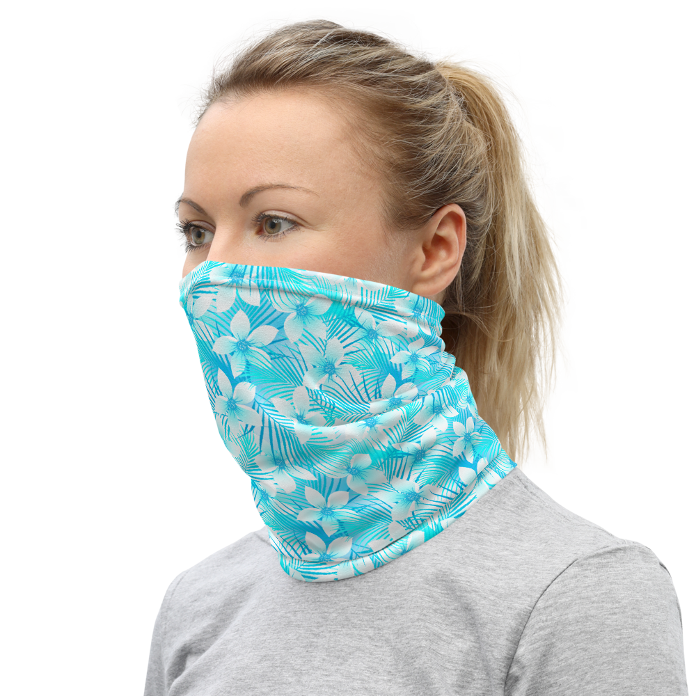 Turquoise Tropical Frangipani Flowers Protective Face Mask, Neck Gaiter Face Shield Cover , Balaclava, Scarf, Headwear Mask, Mouth Cover, Nose Cover