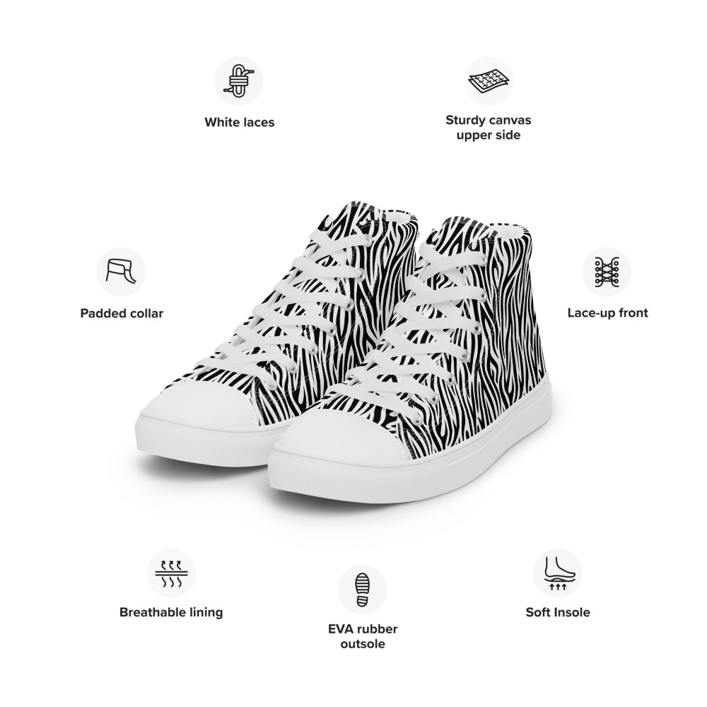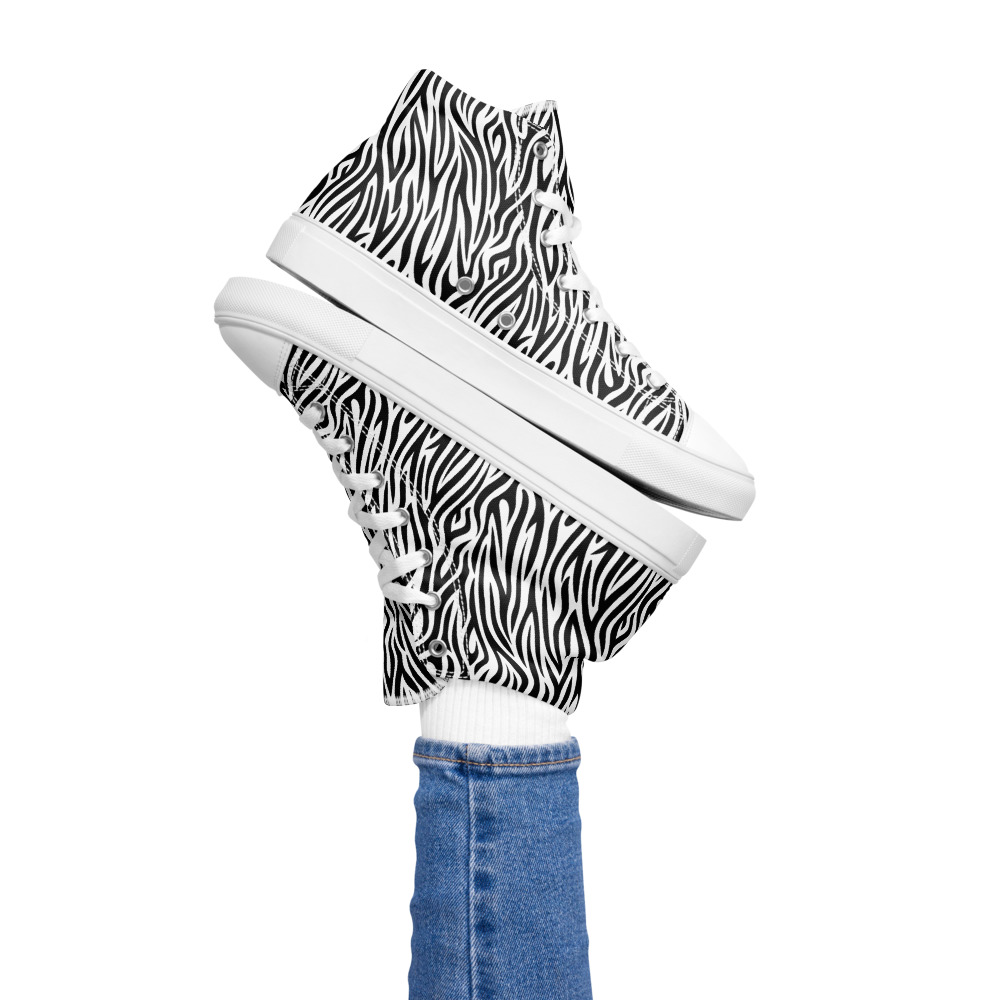 Zebra Print Women’s high top canvas shoes - Animal Print Shoes