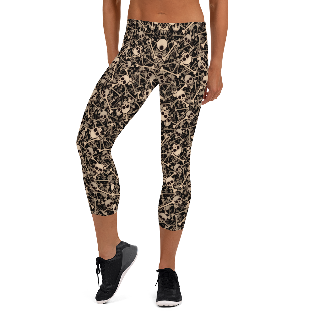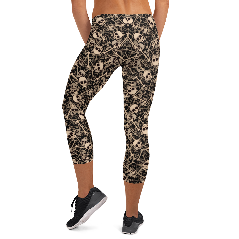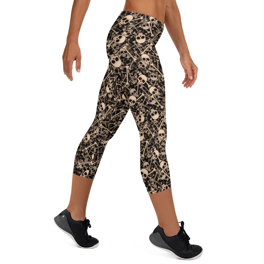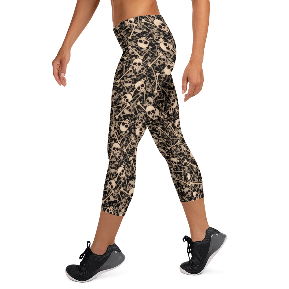 Women's Skulls & Bones Capri Leggings - Crystal Skull Yoga Pants