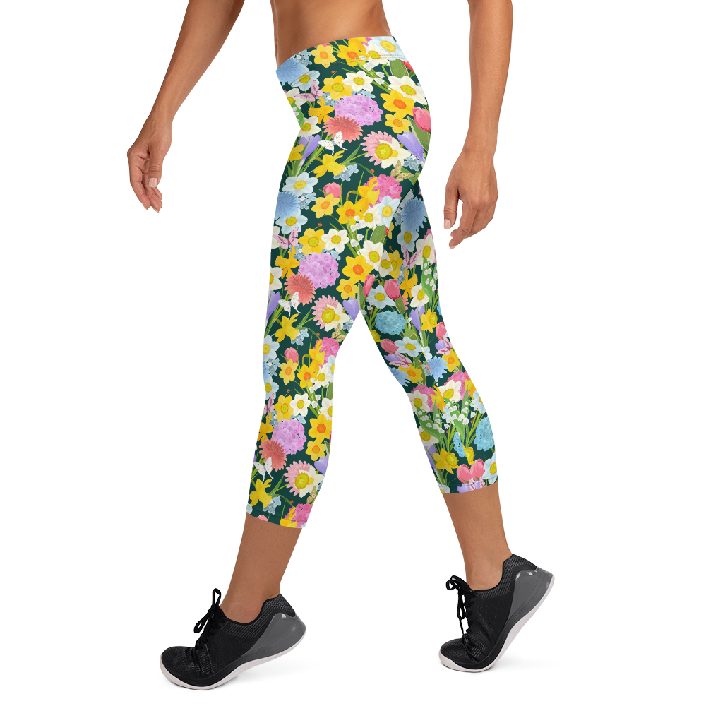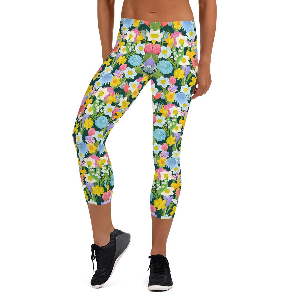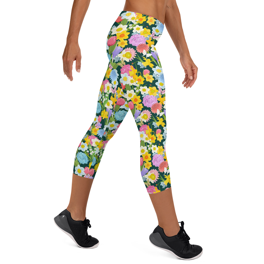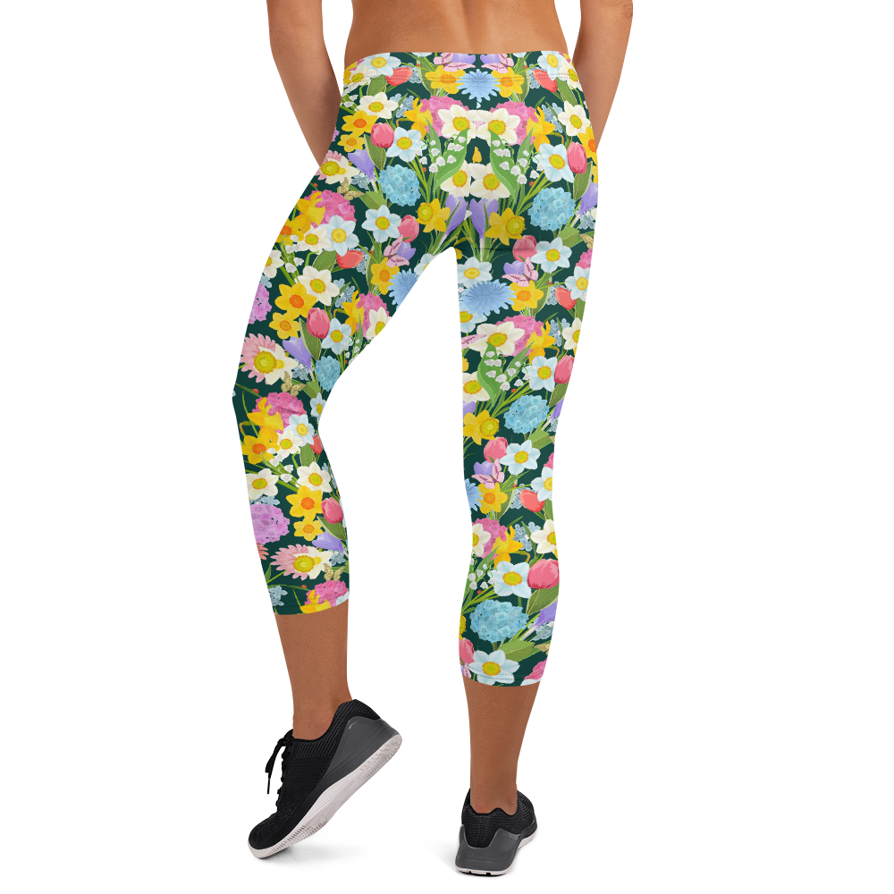 Spring Floral Capri Leggings - Colorful Hawaiian Flowers Yoga Pants