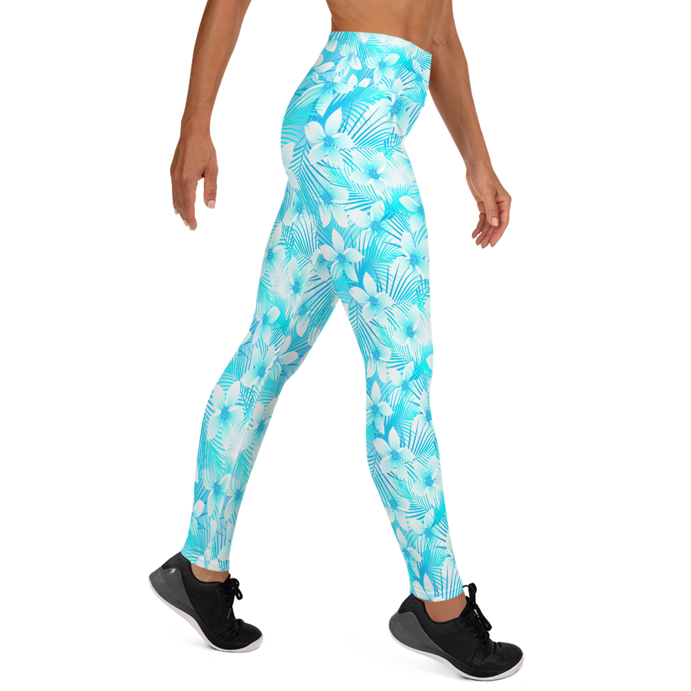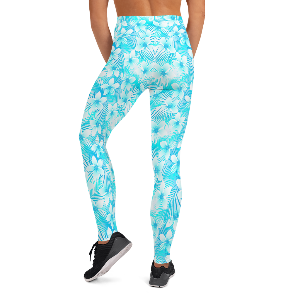 Original High Waist Turquoise Floral Yoga Leggings - Beach Tropical Yoga Pants