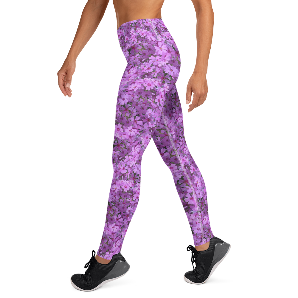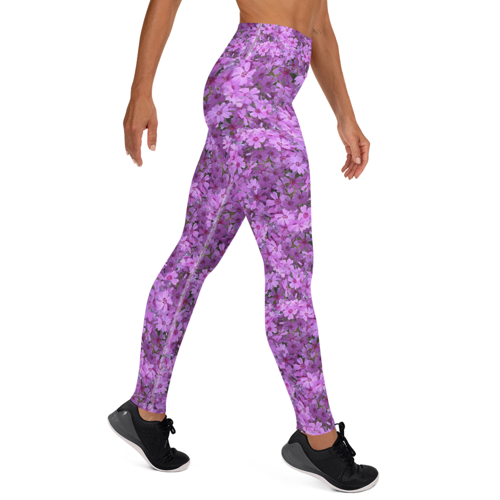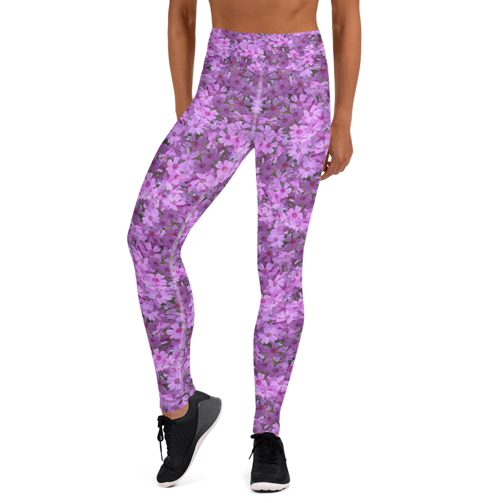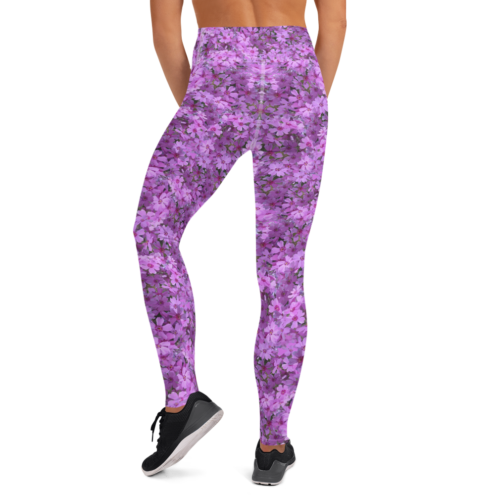 Blue and Purple Flowers Yoga Leggings - Best High Waist Yoga Pants For Women's