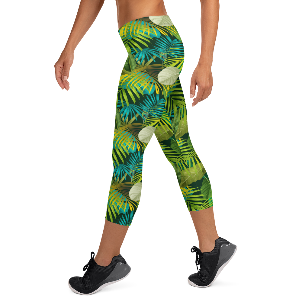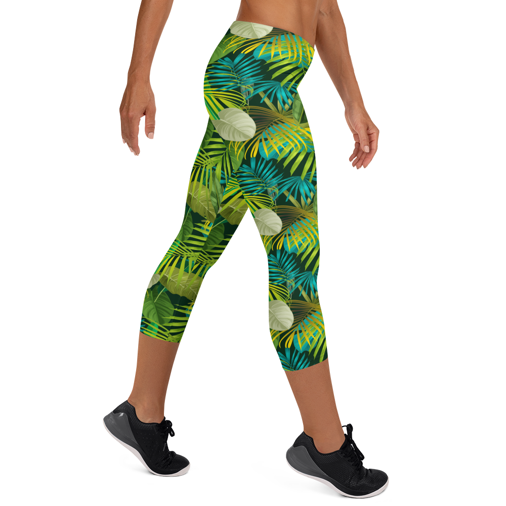 Colorful Fall Foliage Capri Leggings, Jungle Yoga Leggings, Tropical Yoga Pants