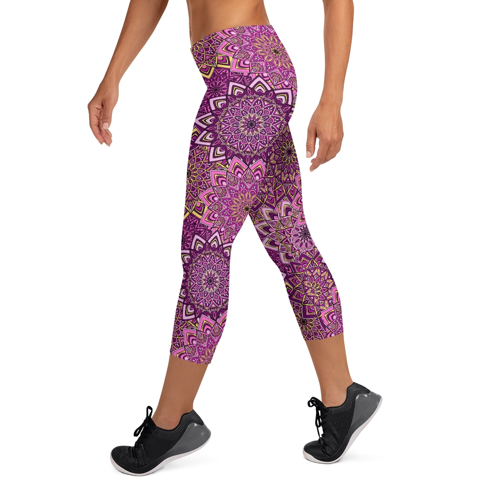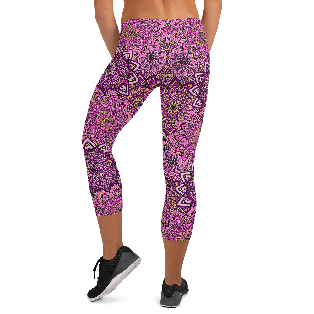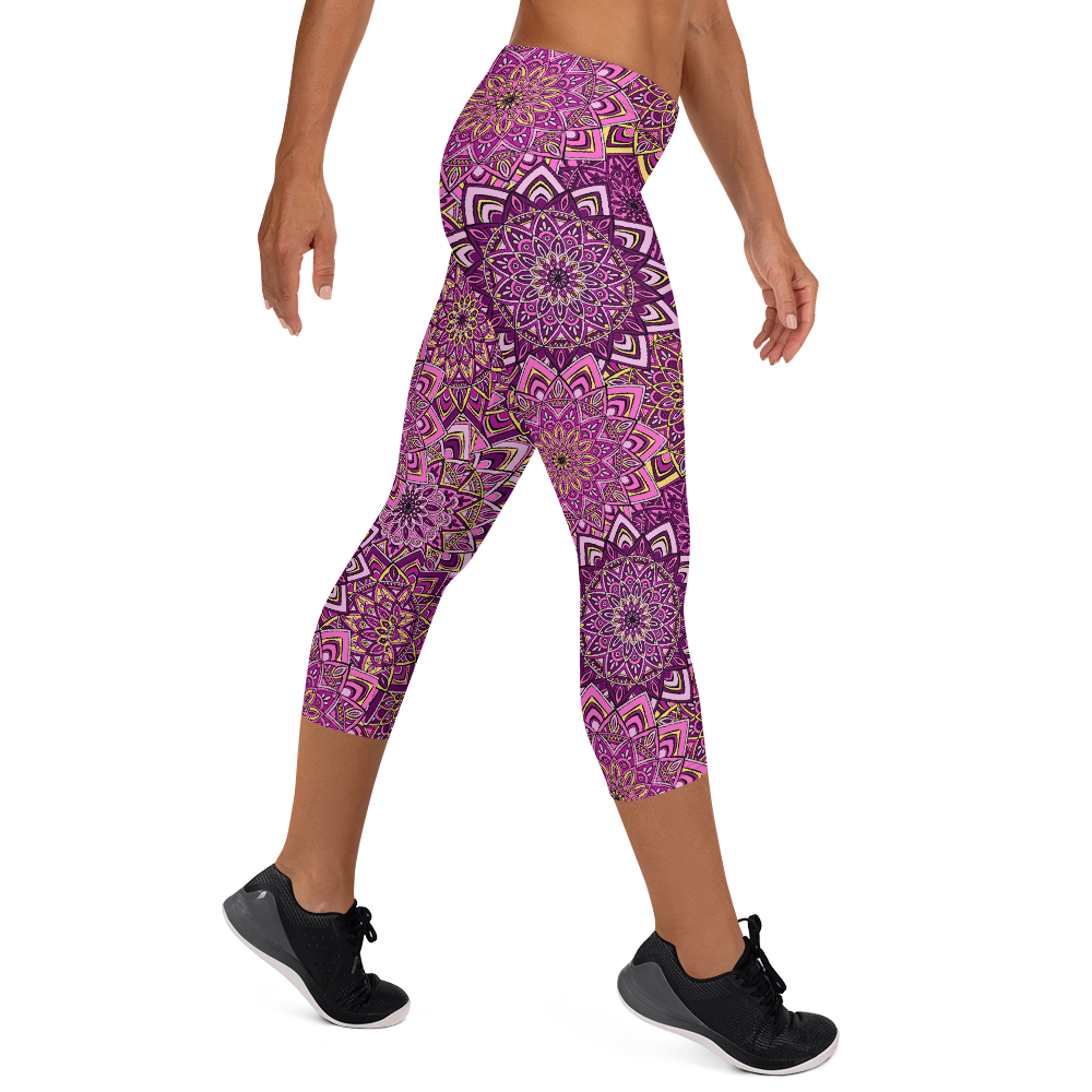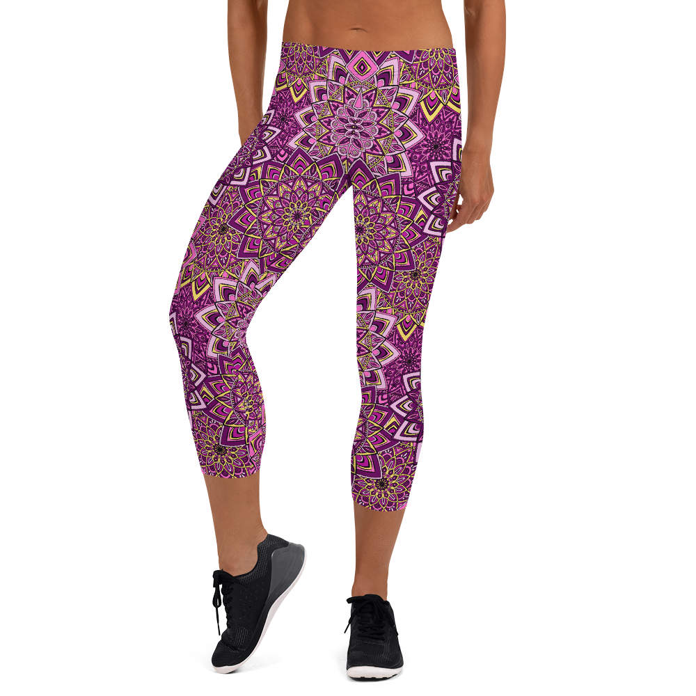 Purple Mandala Flower Capri Leggings, New Level Ultra Soft Fitness Yoga Pants