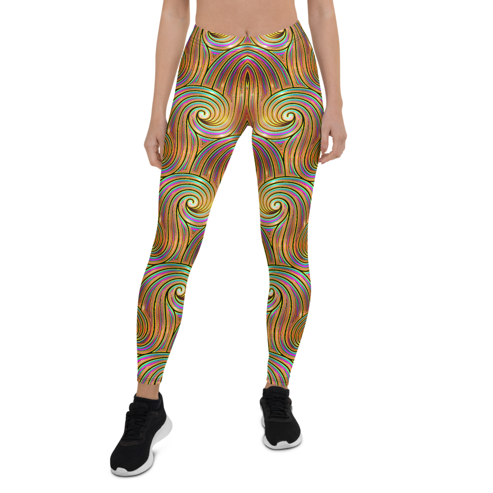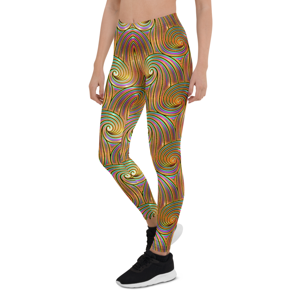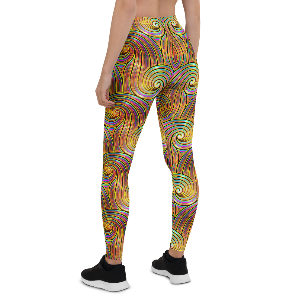 Best Fashion Shiny Nova Golden Wavy Ornament Leggings, New Gold Waves Yoga Pants