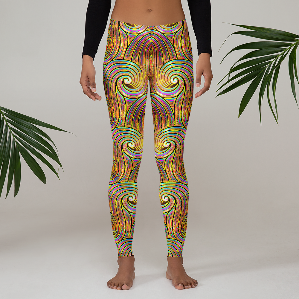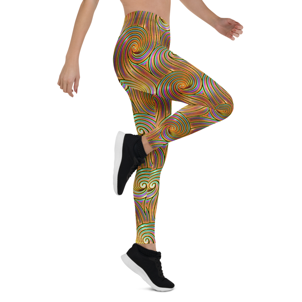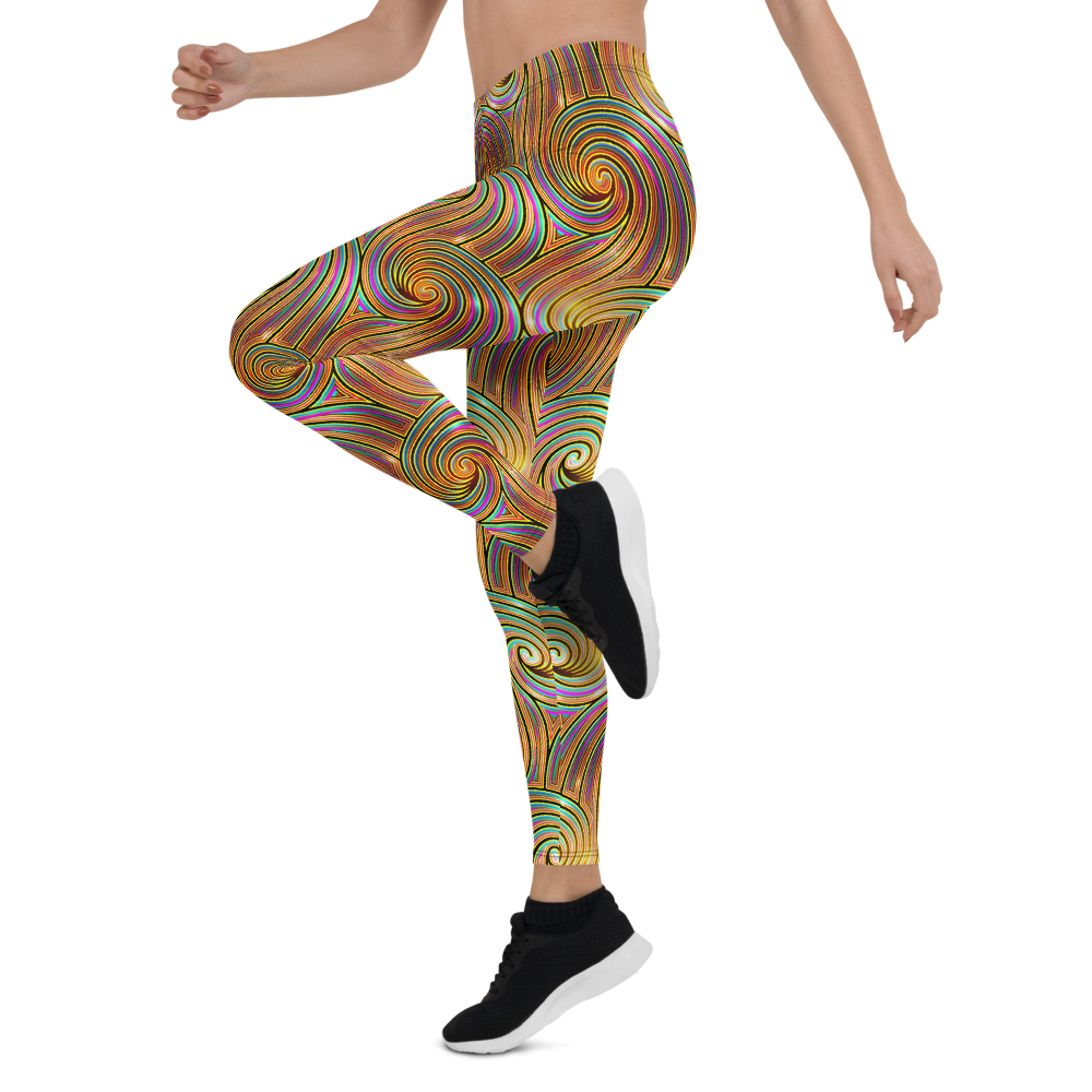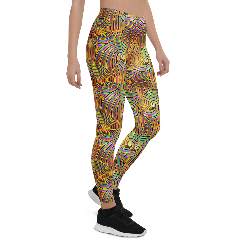Best Fashion Shiny Nova Golden Wavy Ornament Leggings, New Gold Waves Yoga Pants