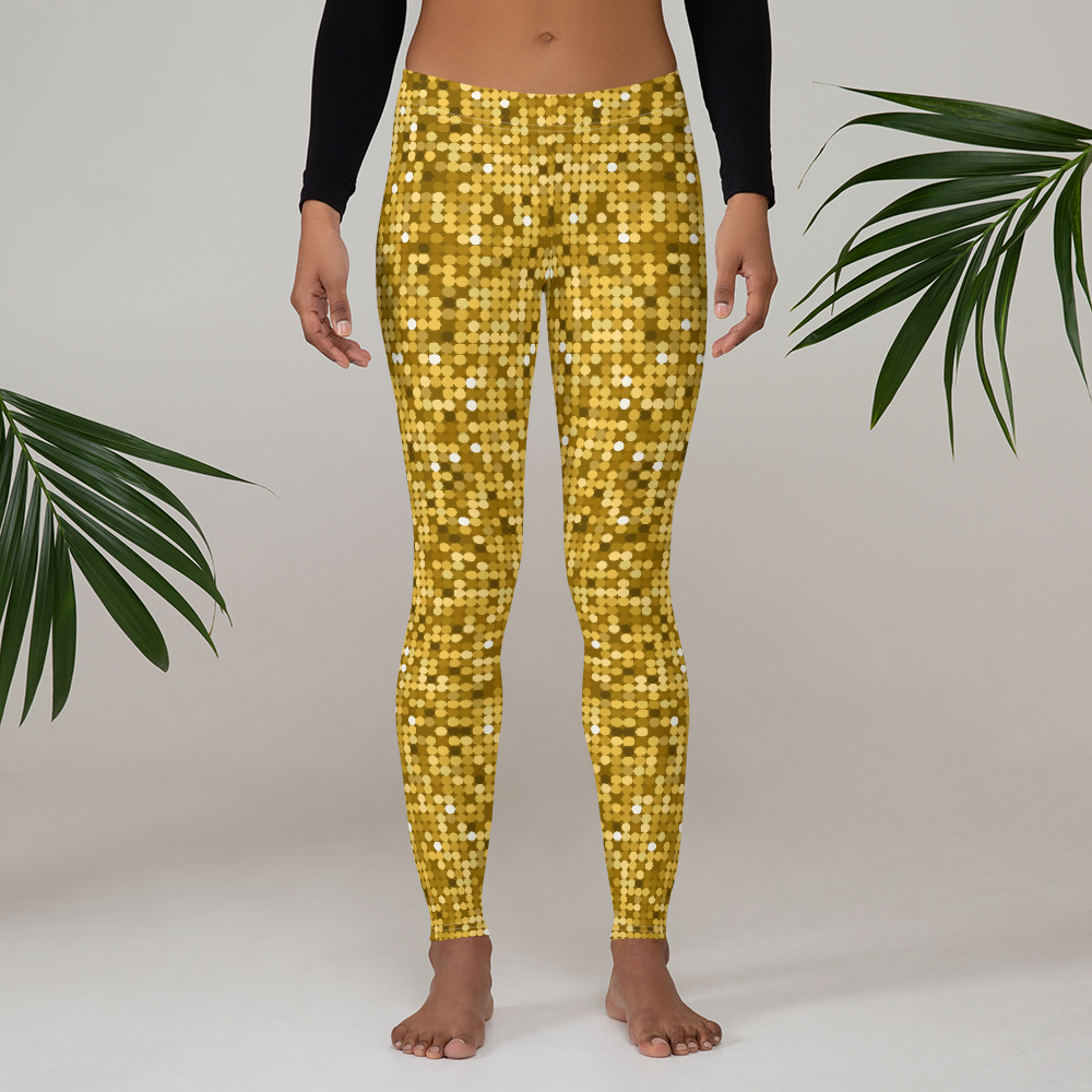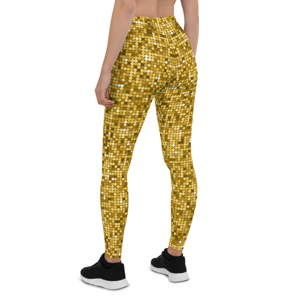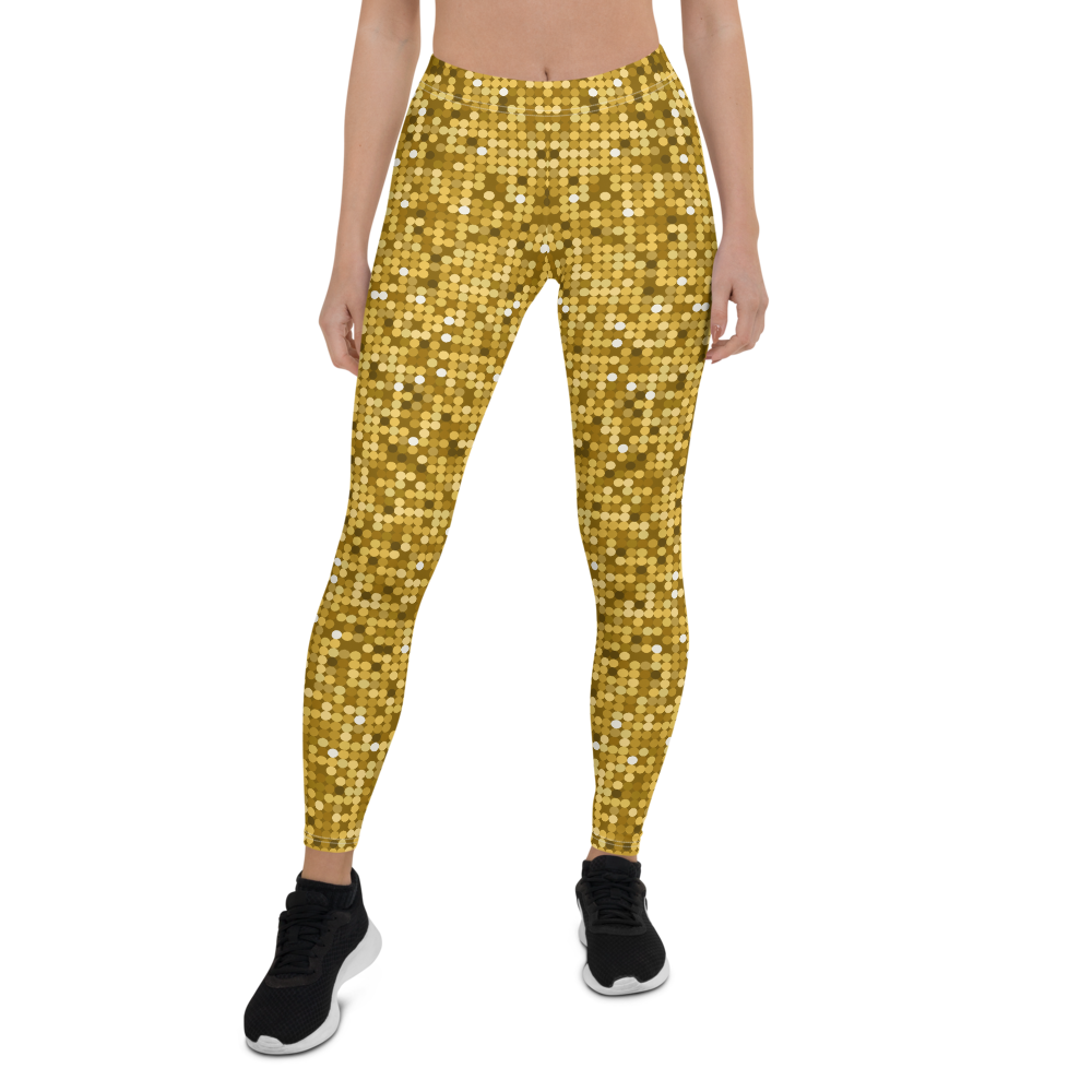 Shiny and Vibrant Gold Disco Club Party Leggings - Fun New Sexy Look Yoga Pants