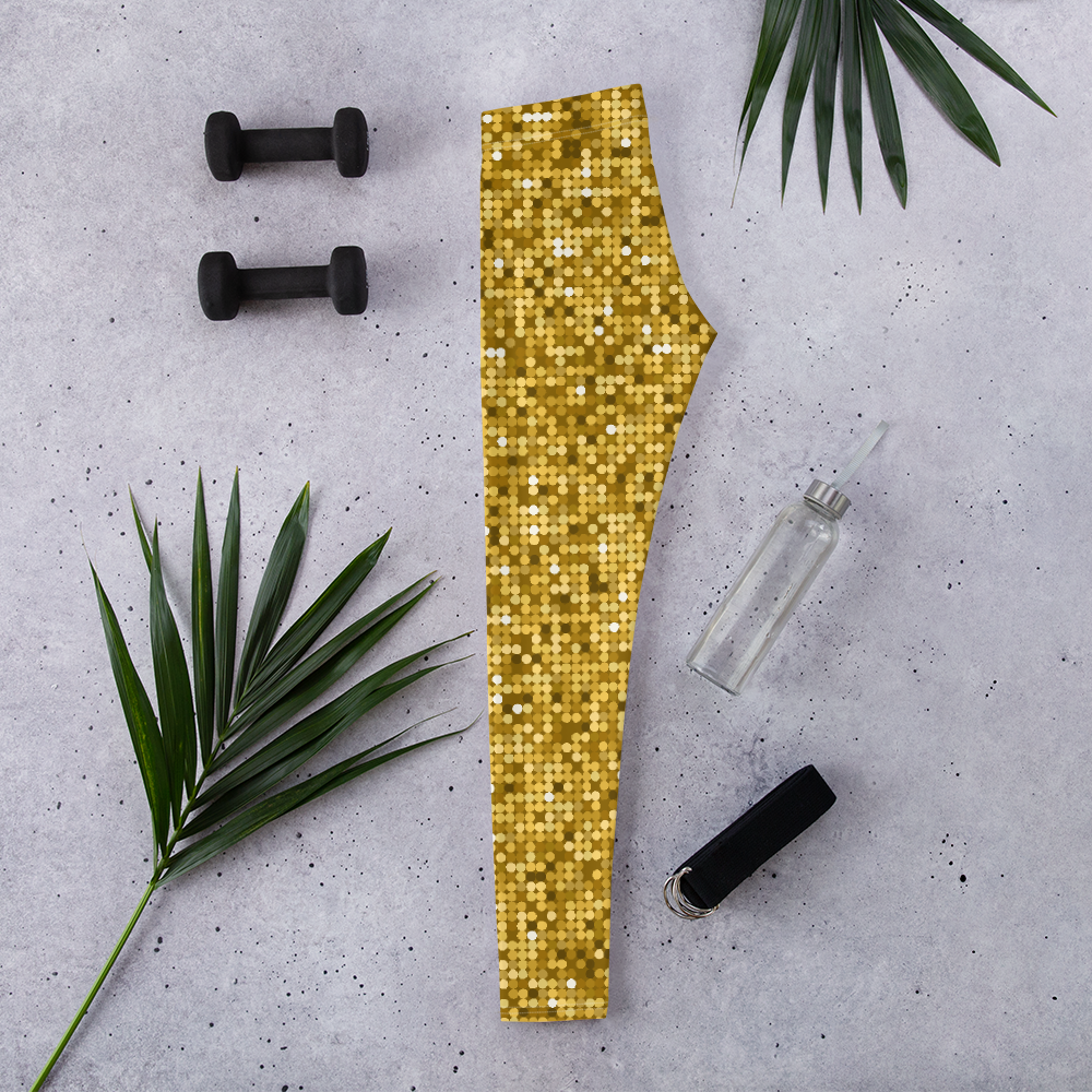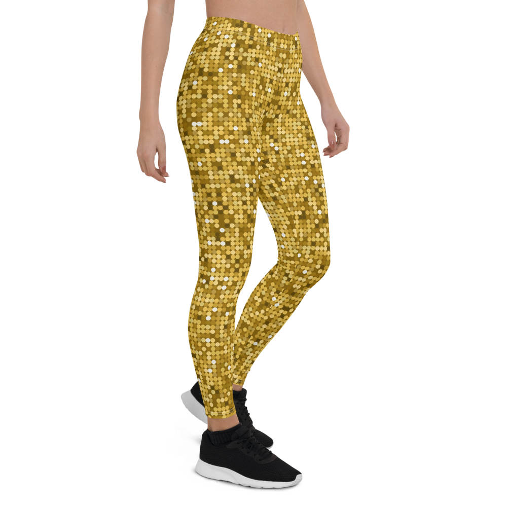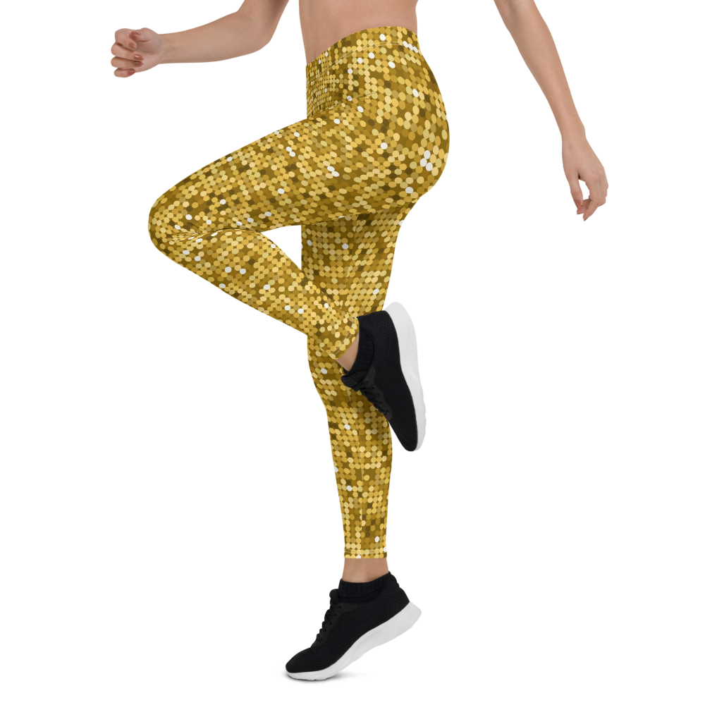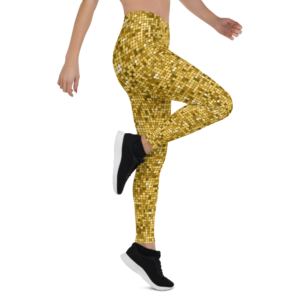 Shiny and Vibrant Gold Disco Club Party Leggings - Fun New Sexy Look Yoga Pants