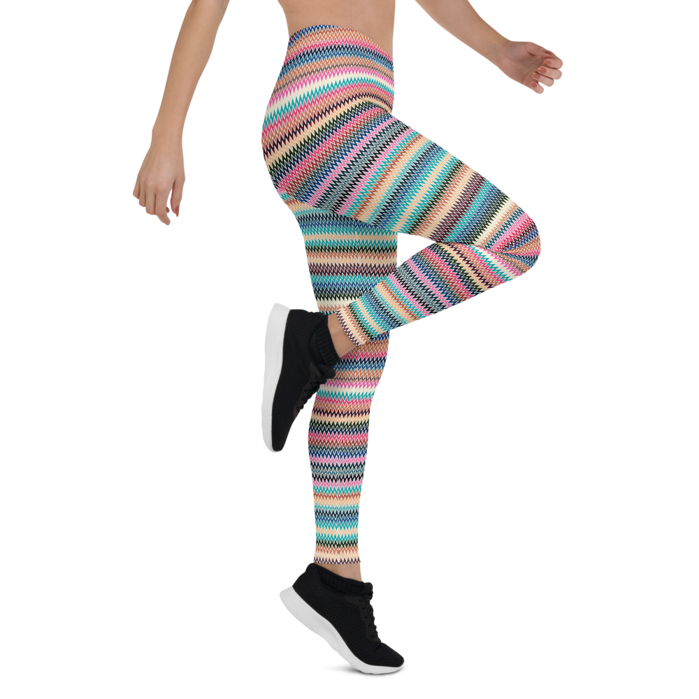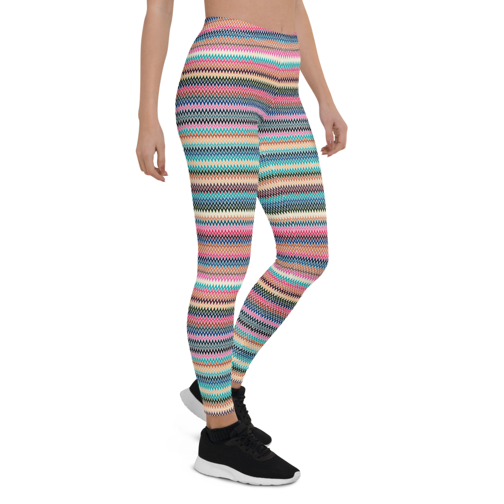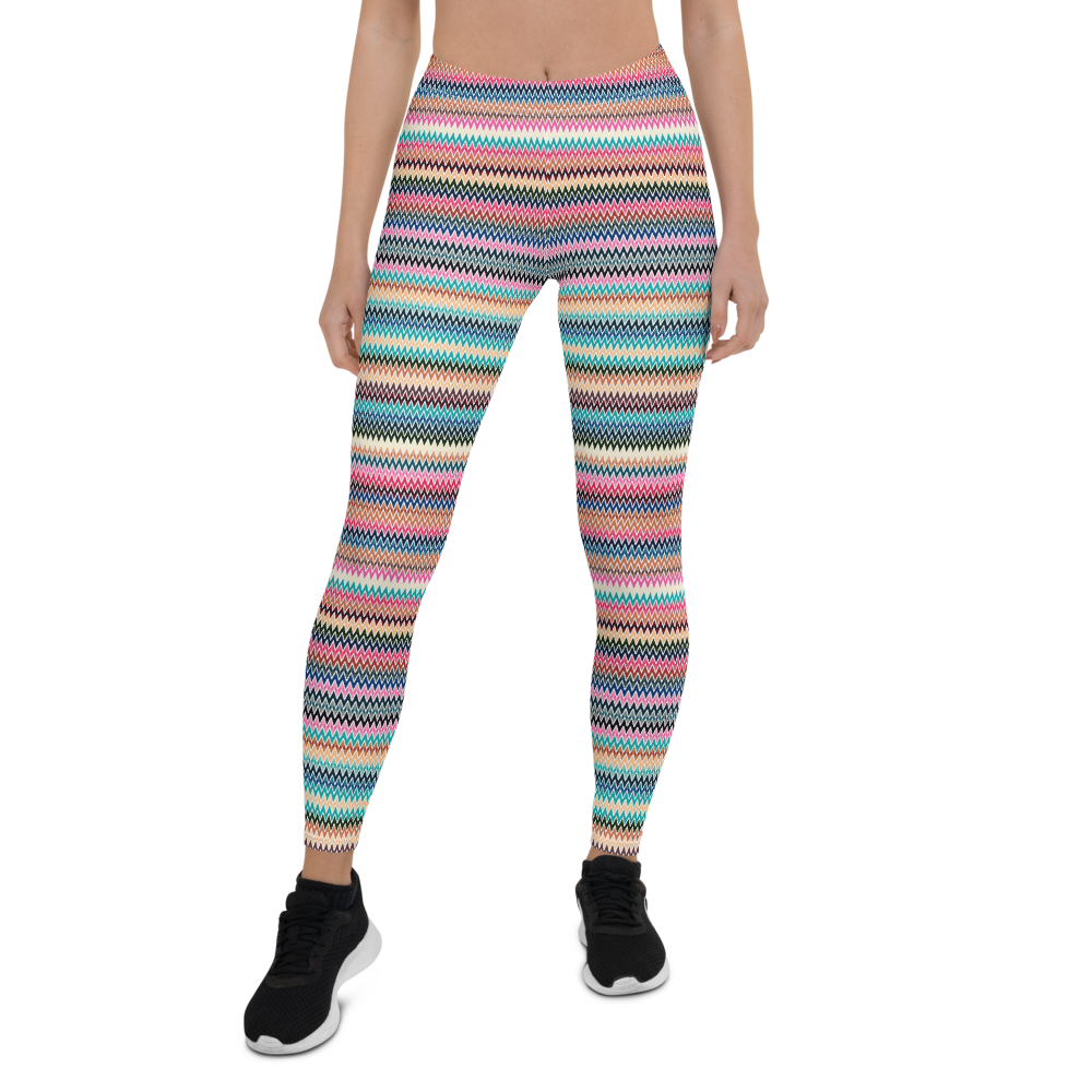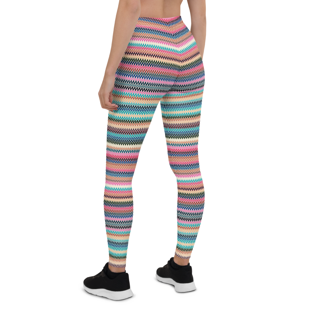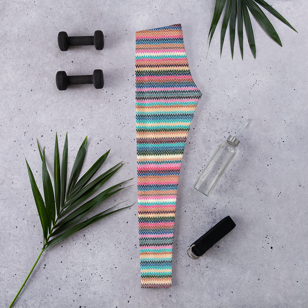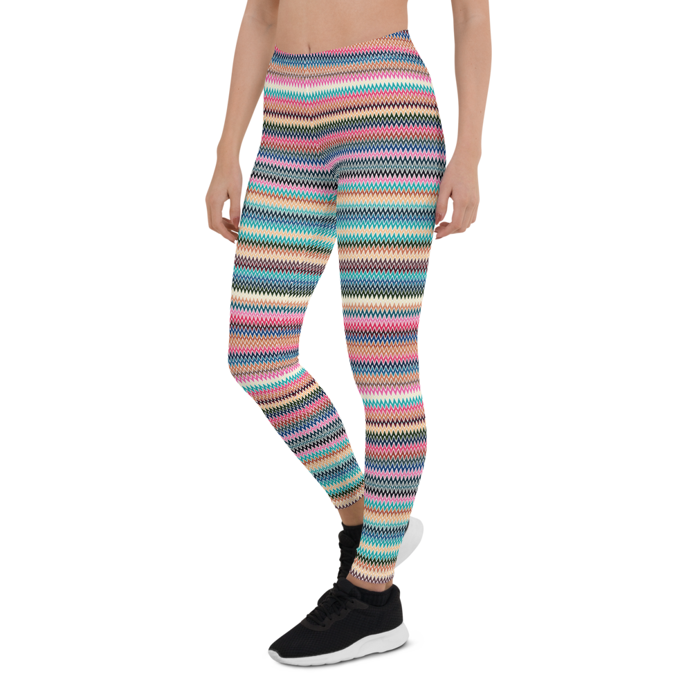 Knit Print Push Up Leggings, Women's Knitting Stretching Print Leggings Fitness