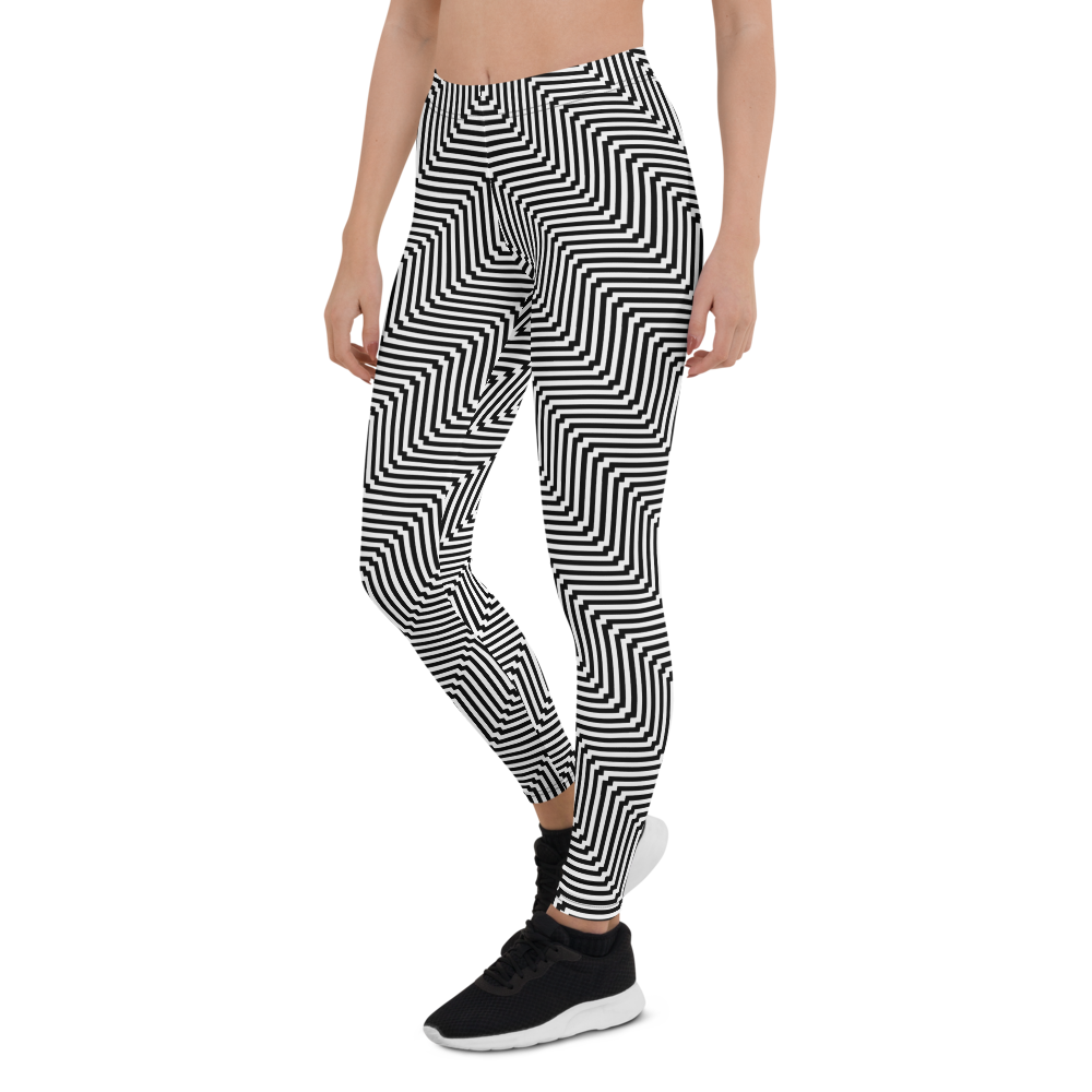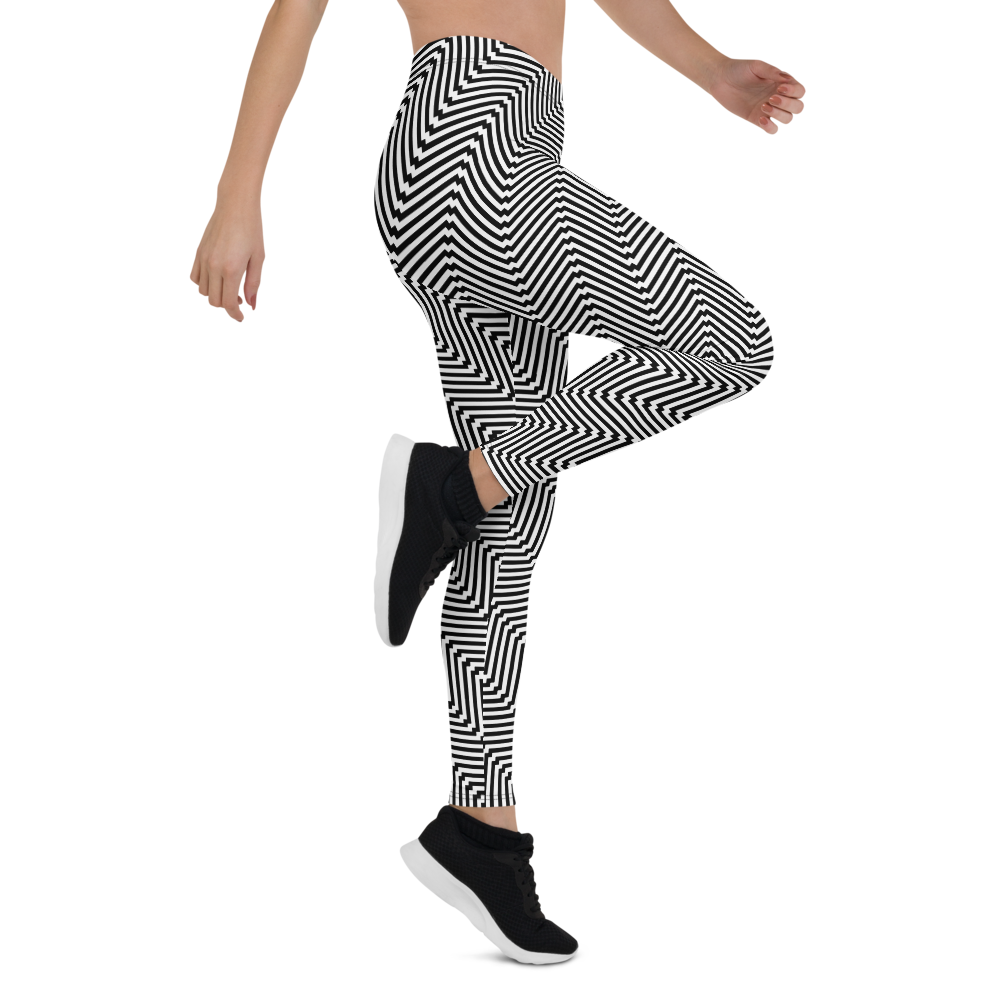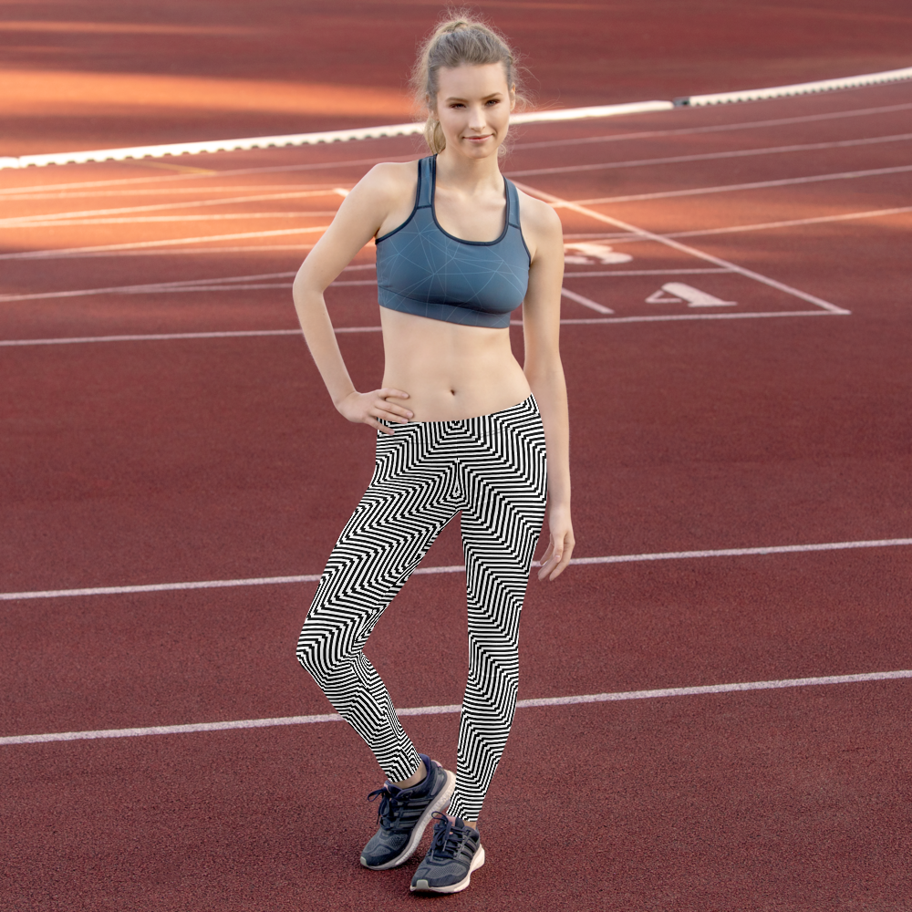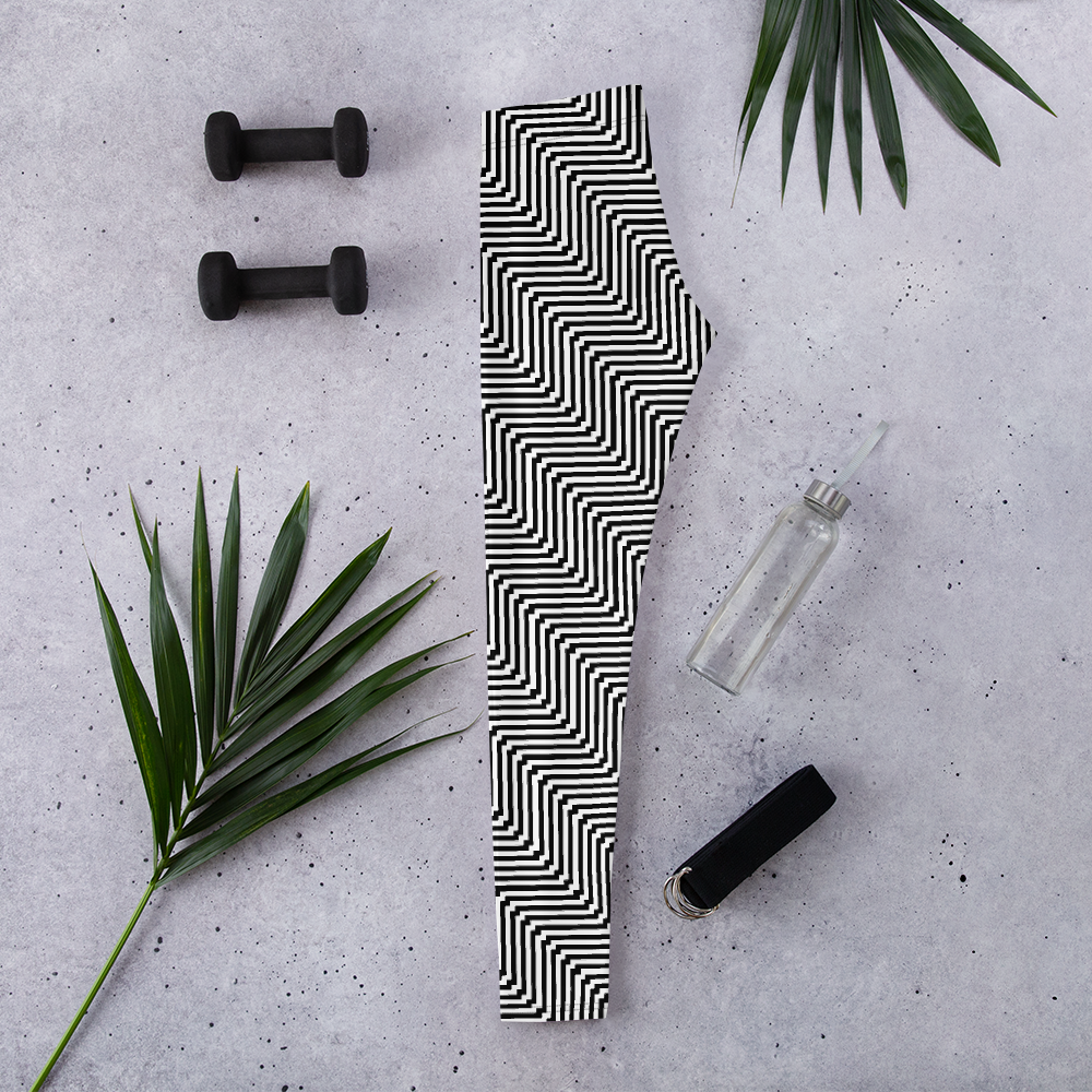 Gorgeous Black and White Funky Zigzag Wave Leggings - Original Striped leggings