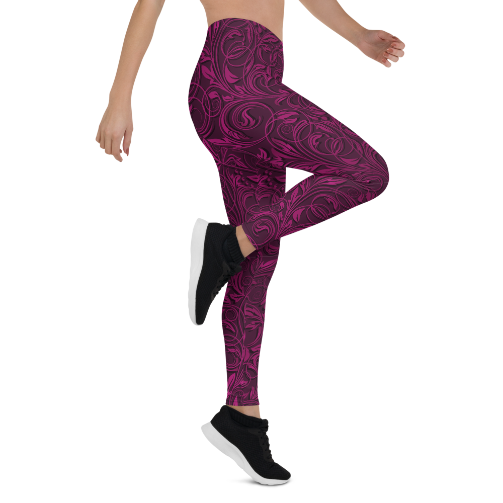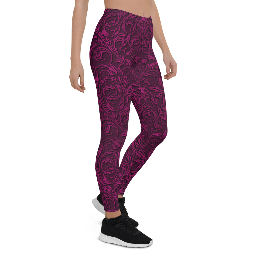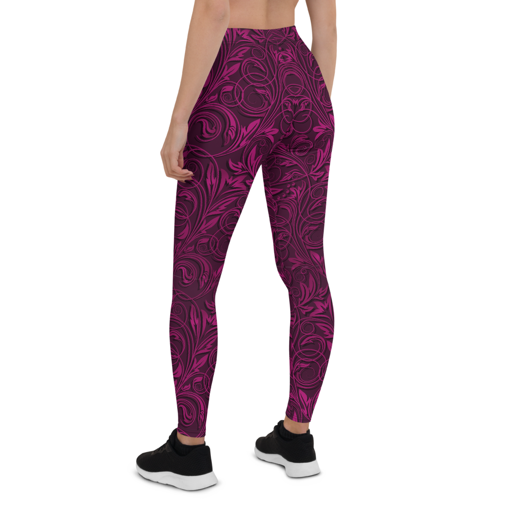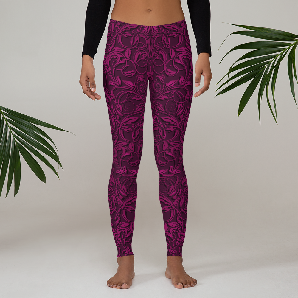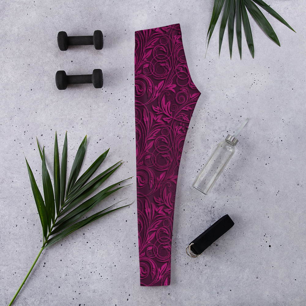 Love Your Legs Leggings, Floral Burgundy Unique Design Squat Proof Workout Pants