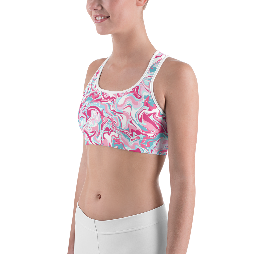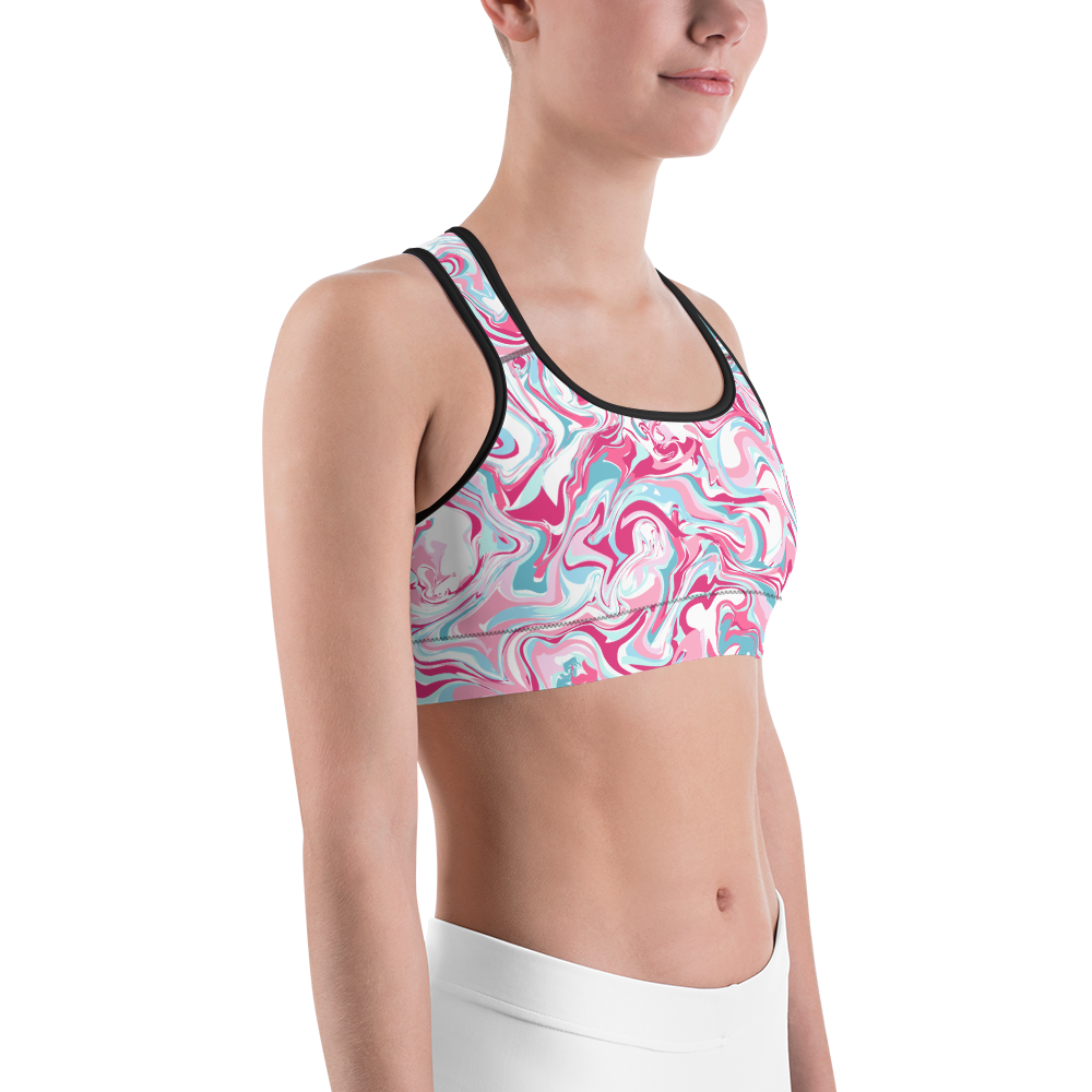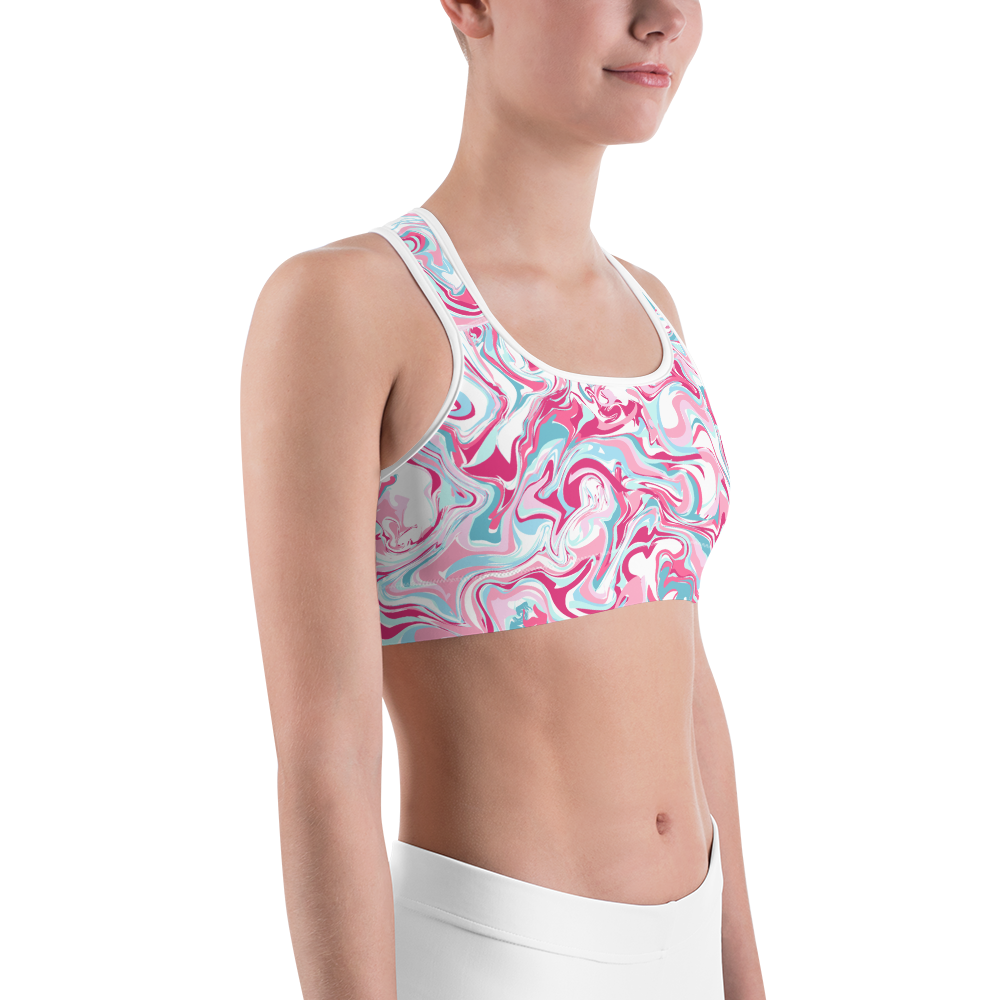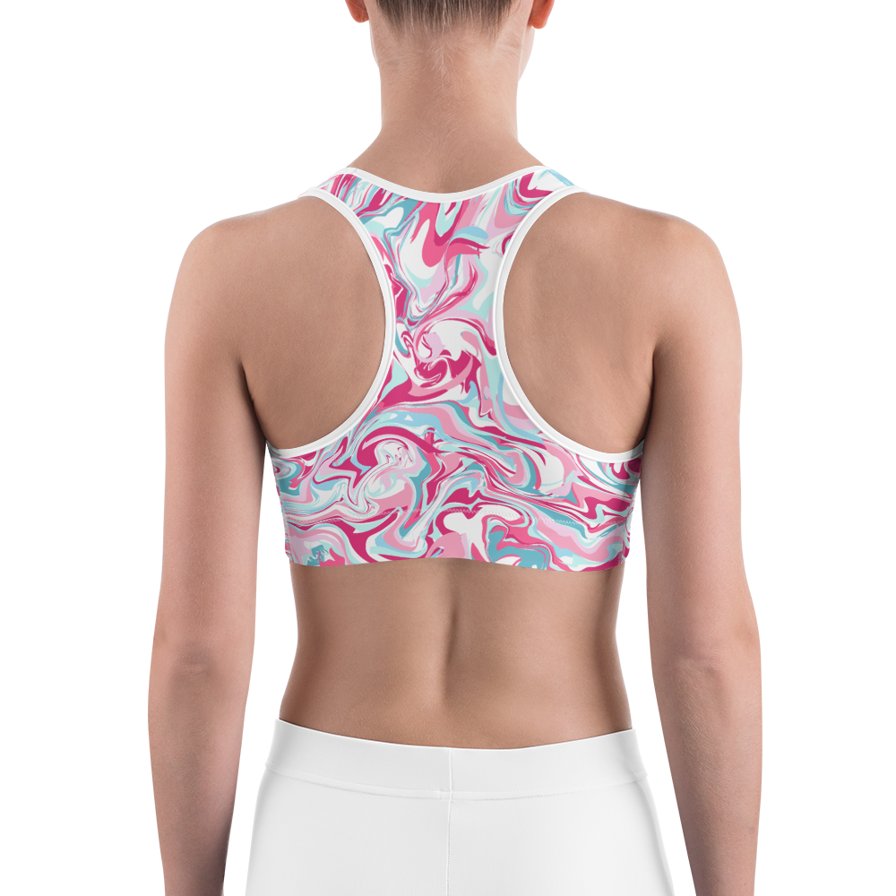 Hot Pink Liquid Paint Sports Bra - Colorful Multi Marble Paint Gym Workout Bra