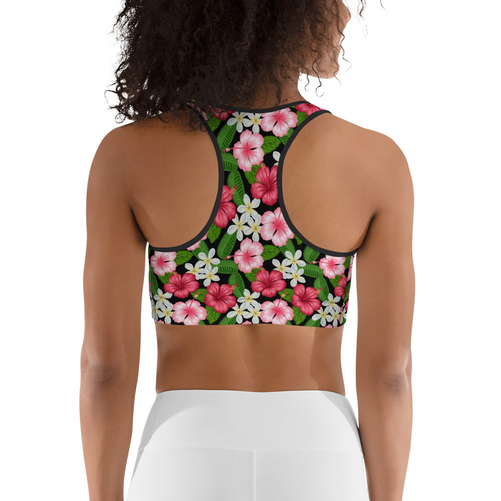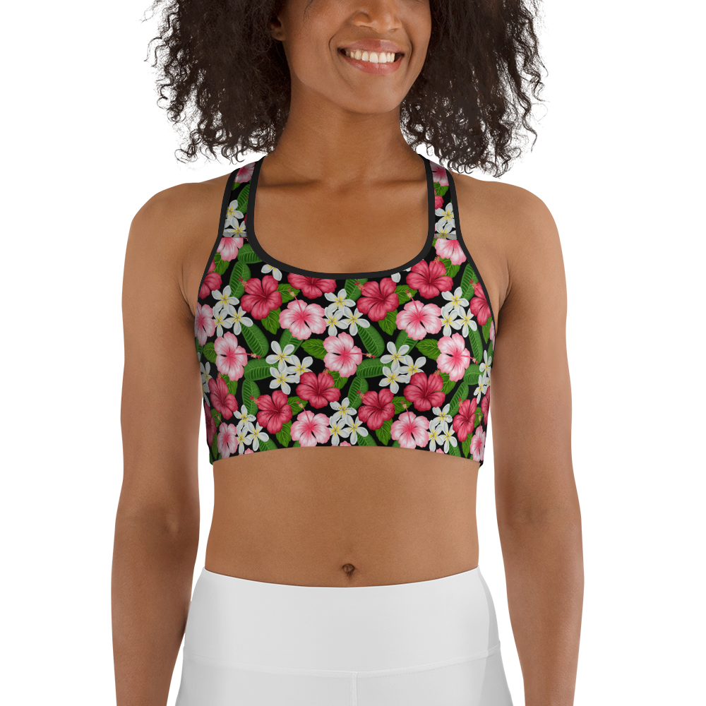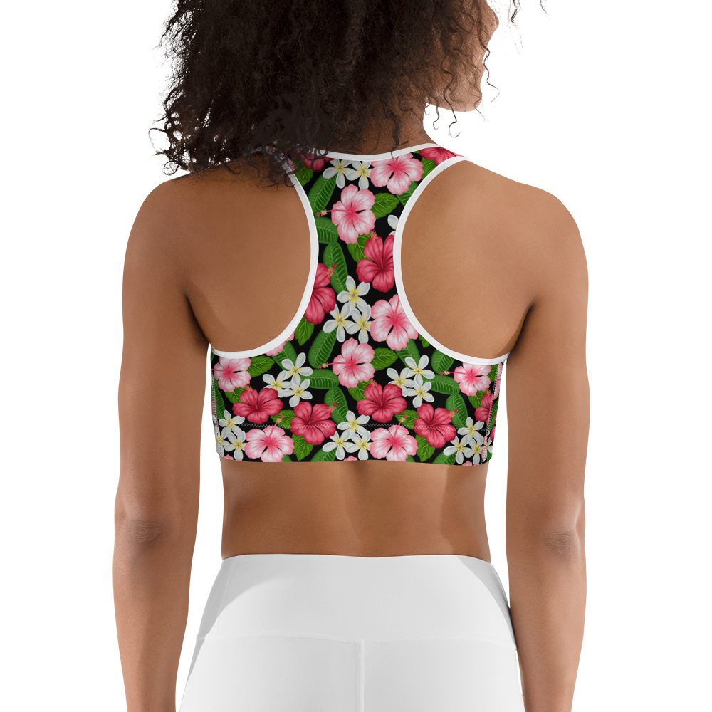 Summer Beach Yoga Sports Bra - Hawaiian Tropical Flowers Gym Workout Sports Bra