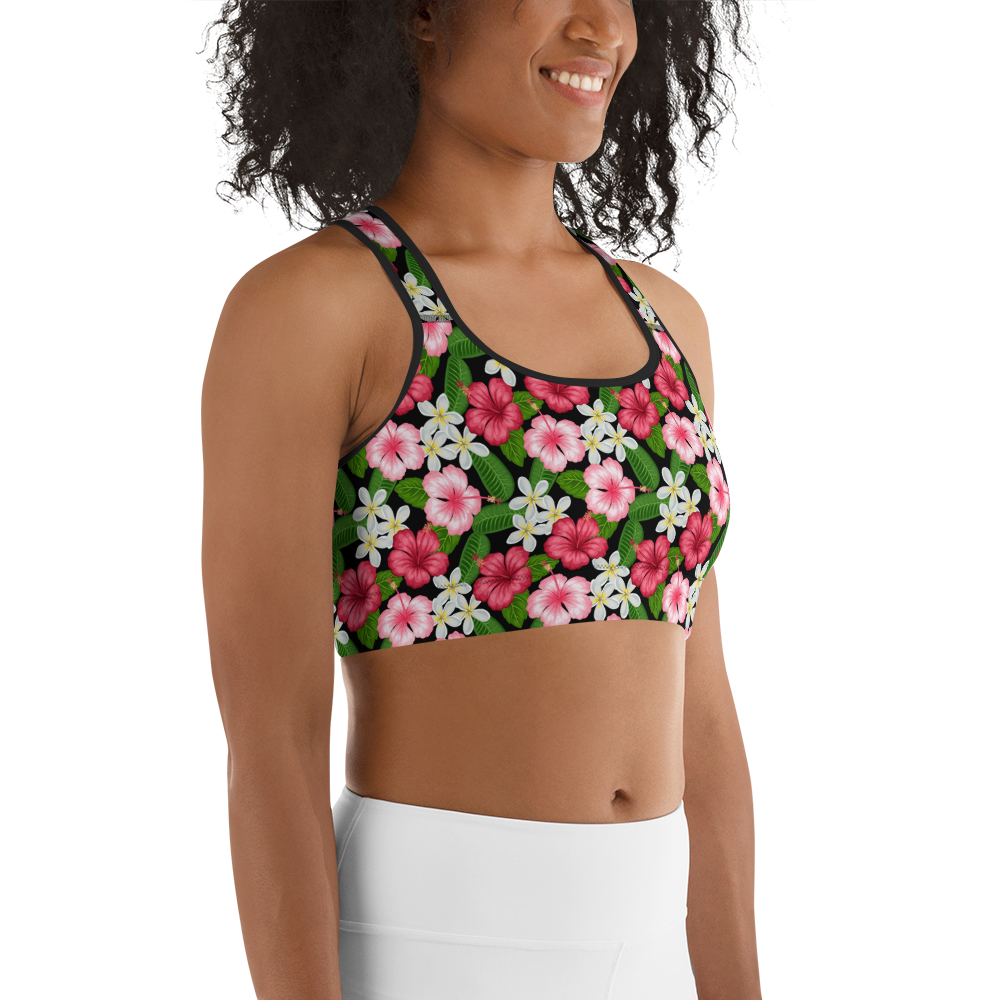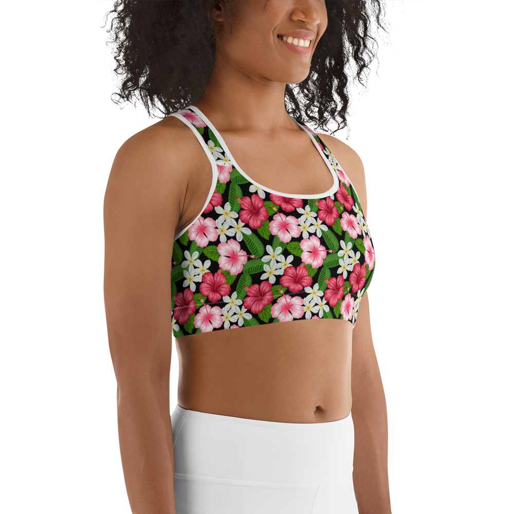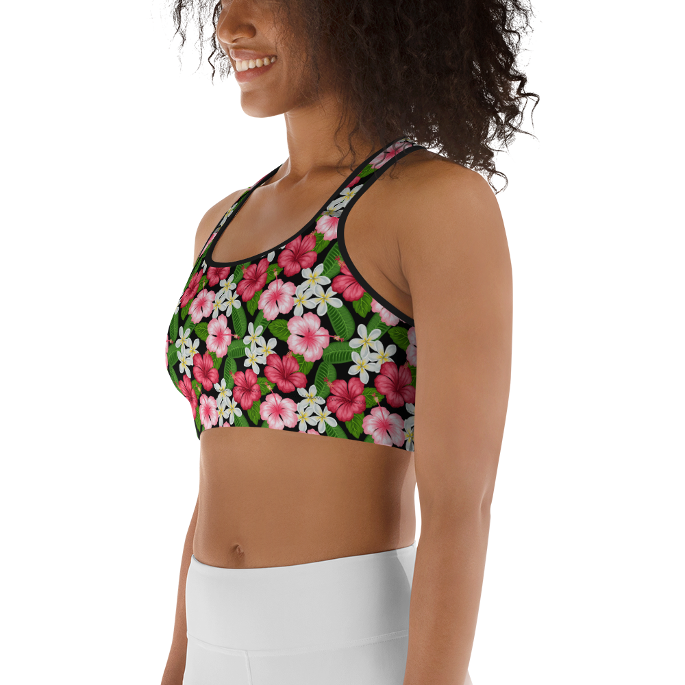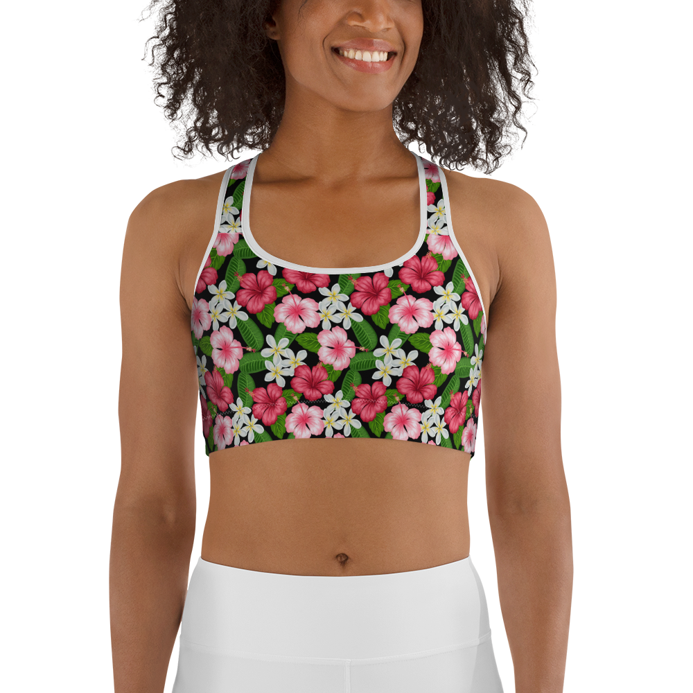 Summer Beach Yoga Sports Bra - Hawaiian Tropical Flowers Gym Workout Sports Bra