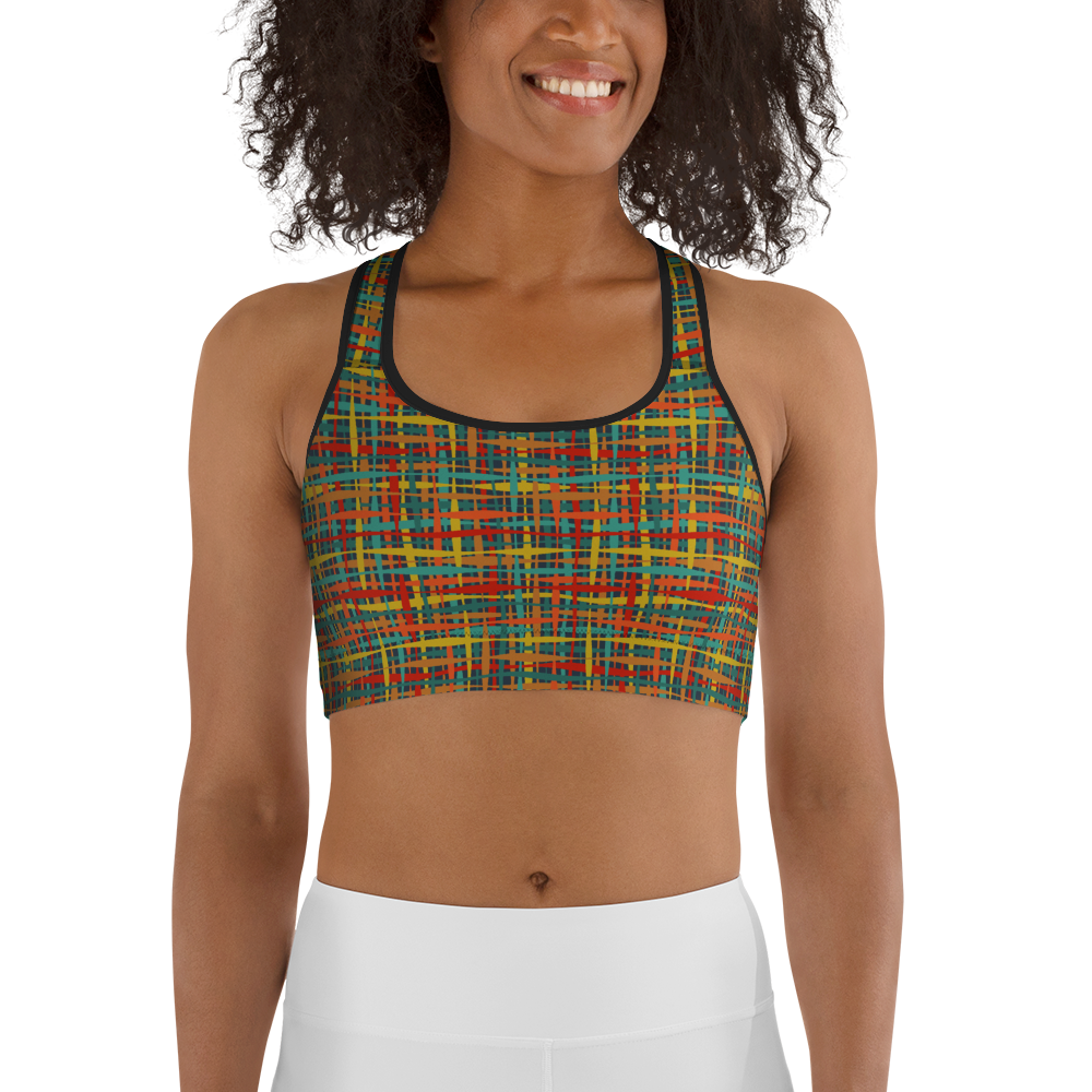 Colorful Stripes and Lines Workout Sports Bra, Full Of Life Gym Yoga Sports Bra