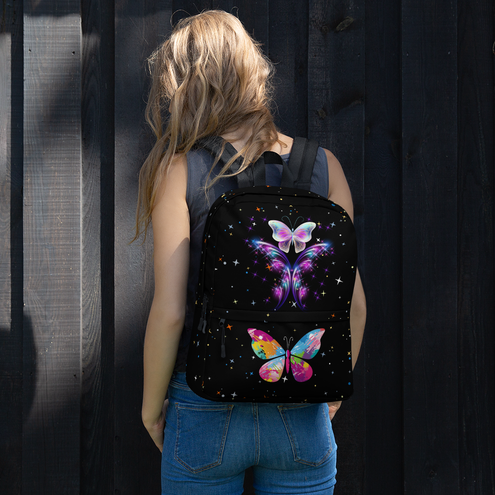 Bright Colorful Butterflies with Shiny Glowing Stars Backpack