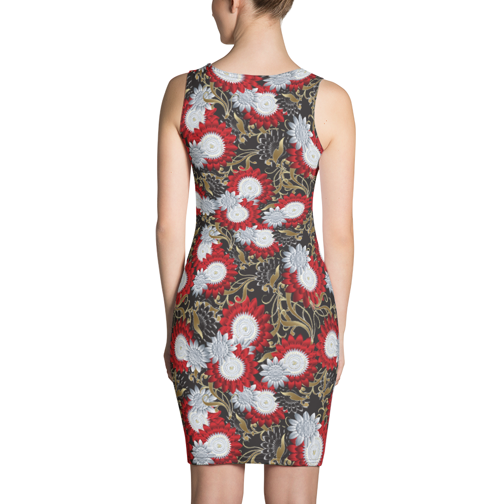 Bright White, Red and Gold Floral Dress