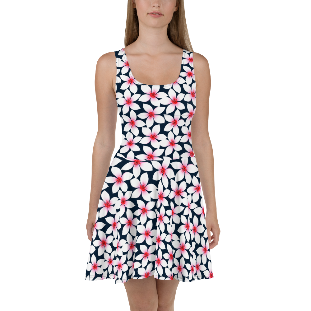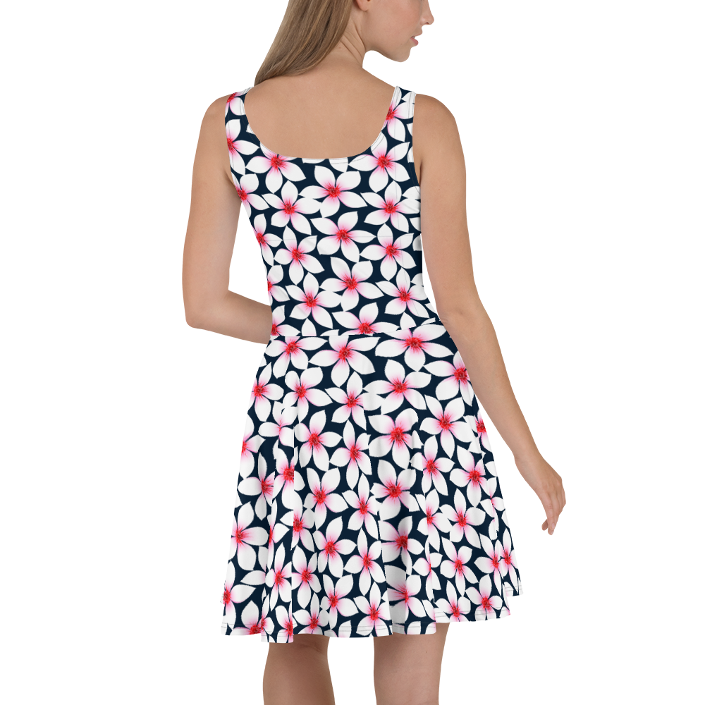 Hot Summer White Tropical Hibiscus Flowers Skater Dress
