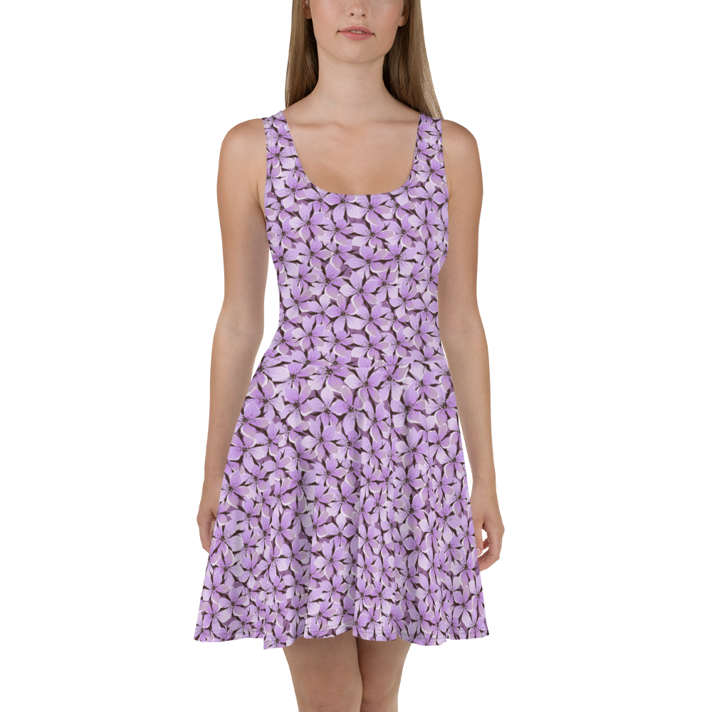 Trendy Hot Summer Purple Tropical Flowers Print Skater Dress