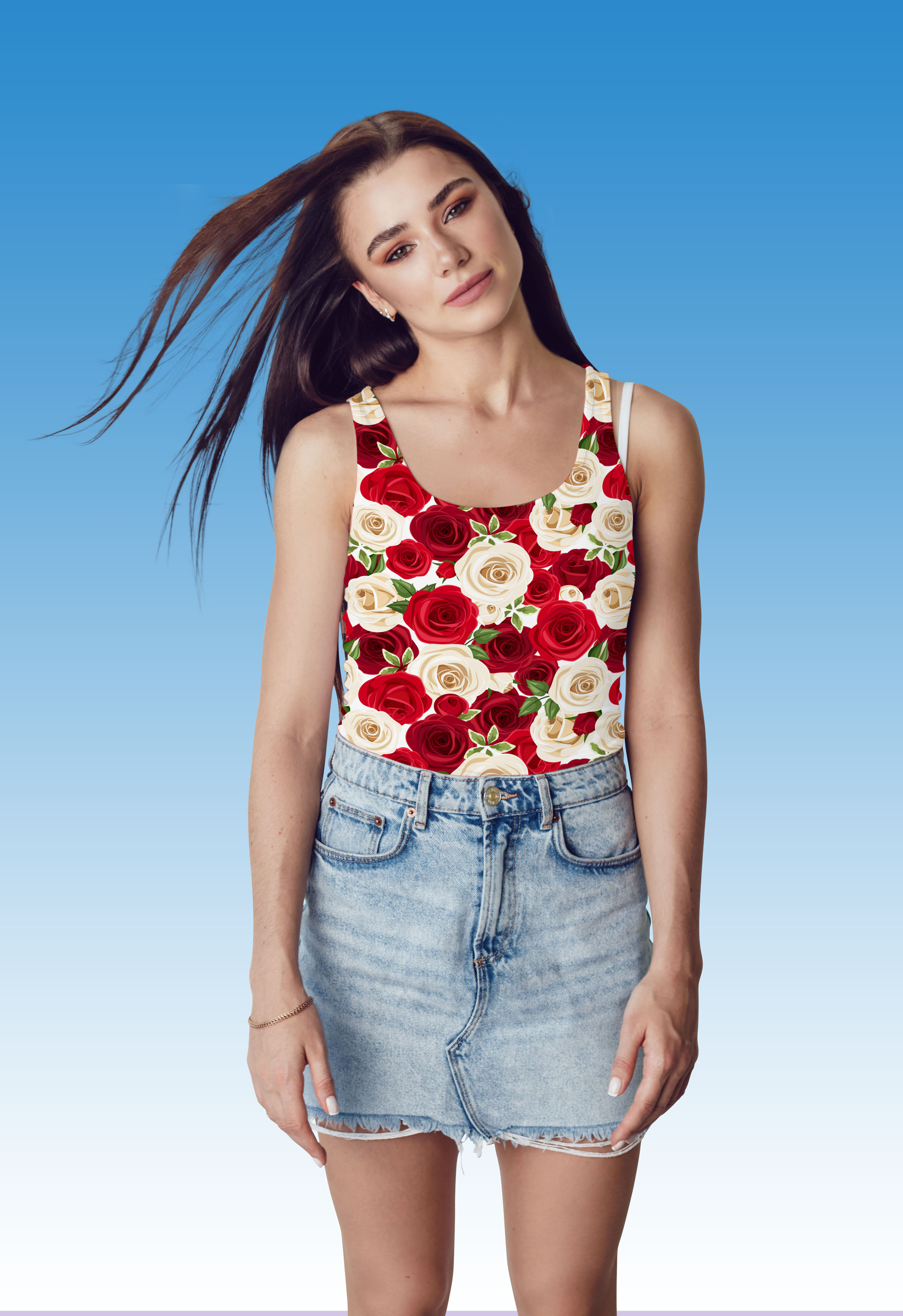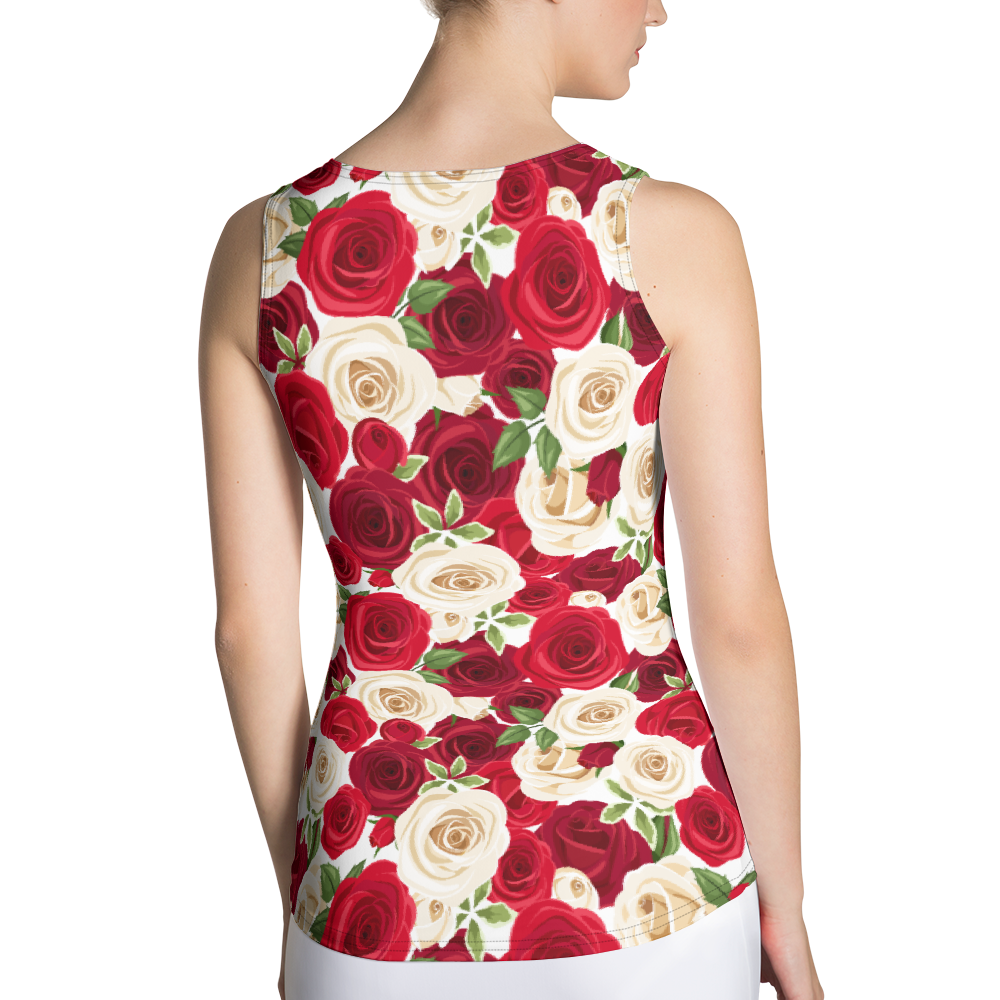 White and Red Roses Tank Top - Women's Floral Fashion Tank Top