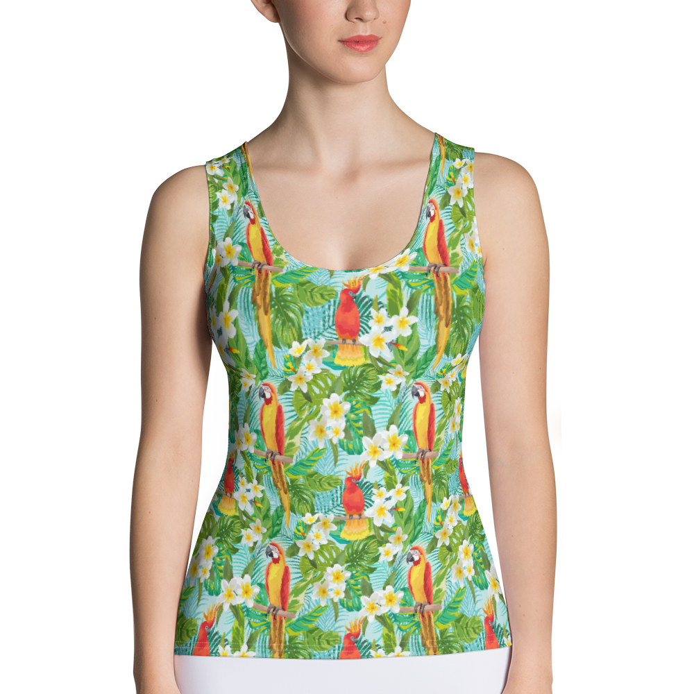 Best Hot Summer Jungle Parrot Pattern All-Over Tank Top