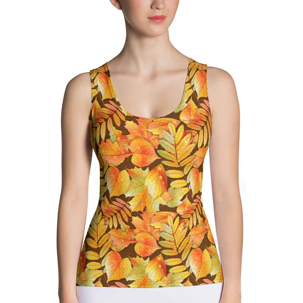 Fallen Autumn Leaves Tank Top - Gold Fall Leaves Tank Tops