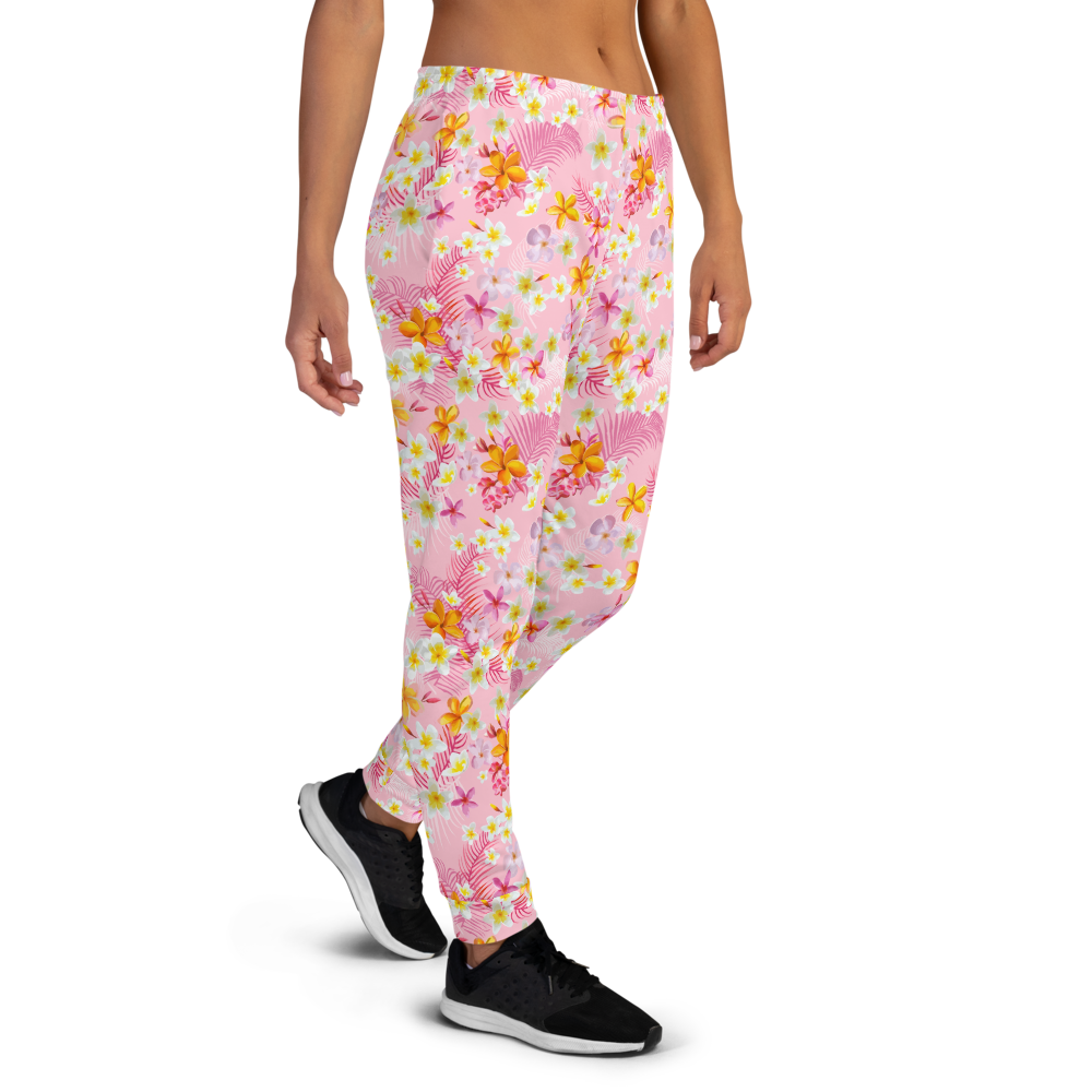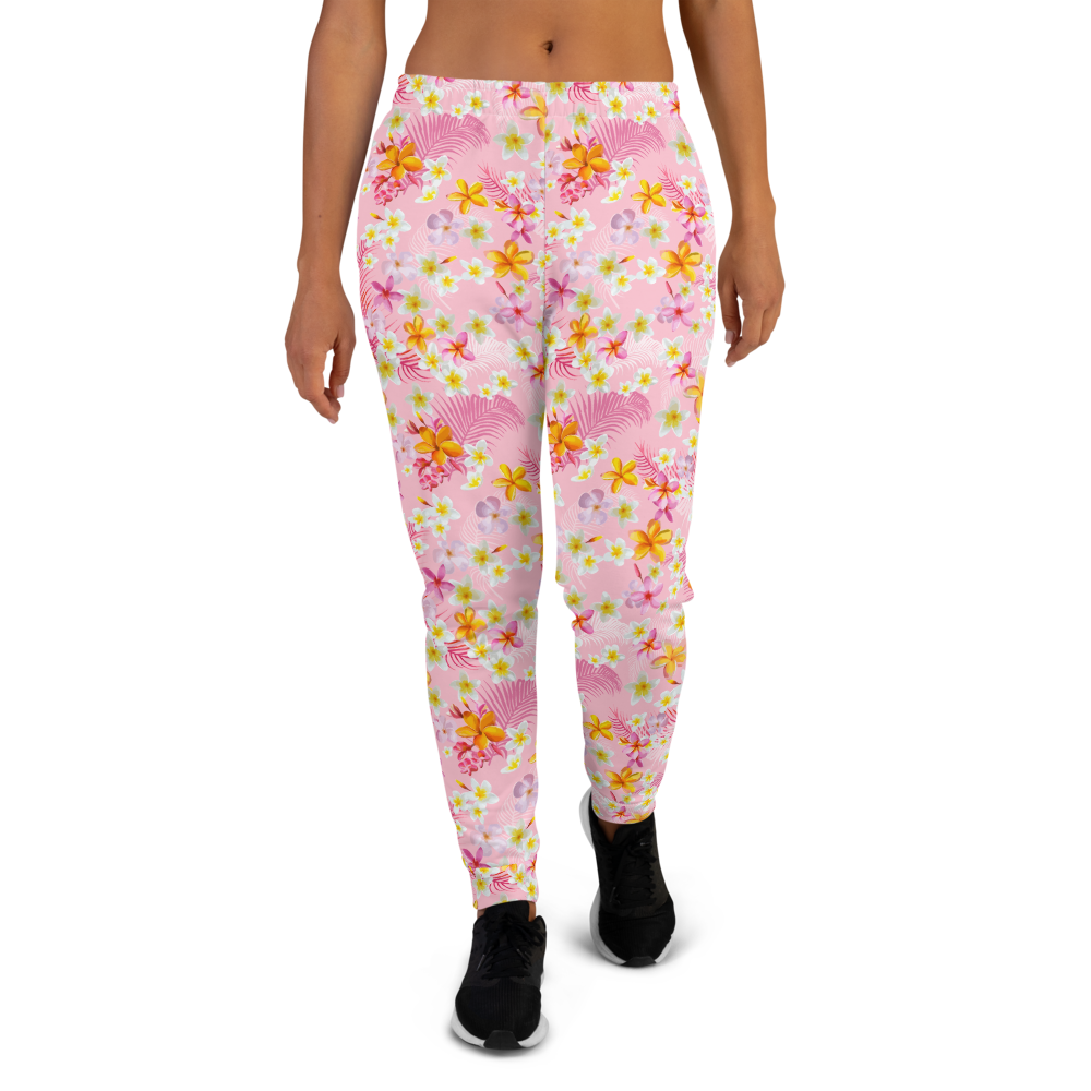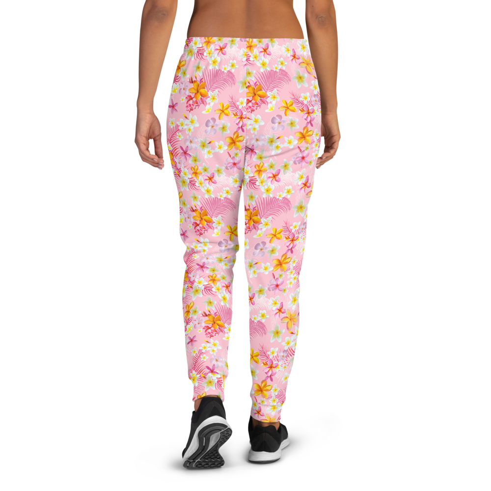 Women's Colored Flowers on Pink Print Joggers with Pockets, (XS-3XL) Relaxed Fit