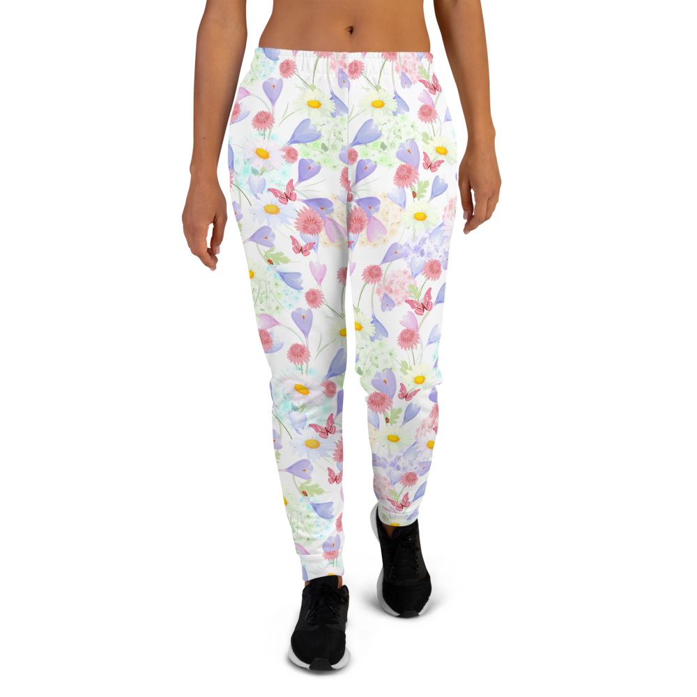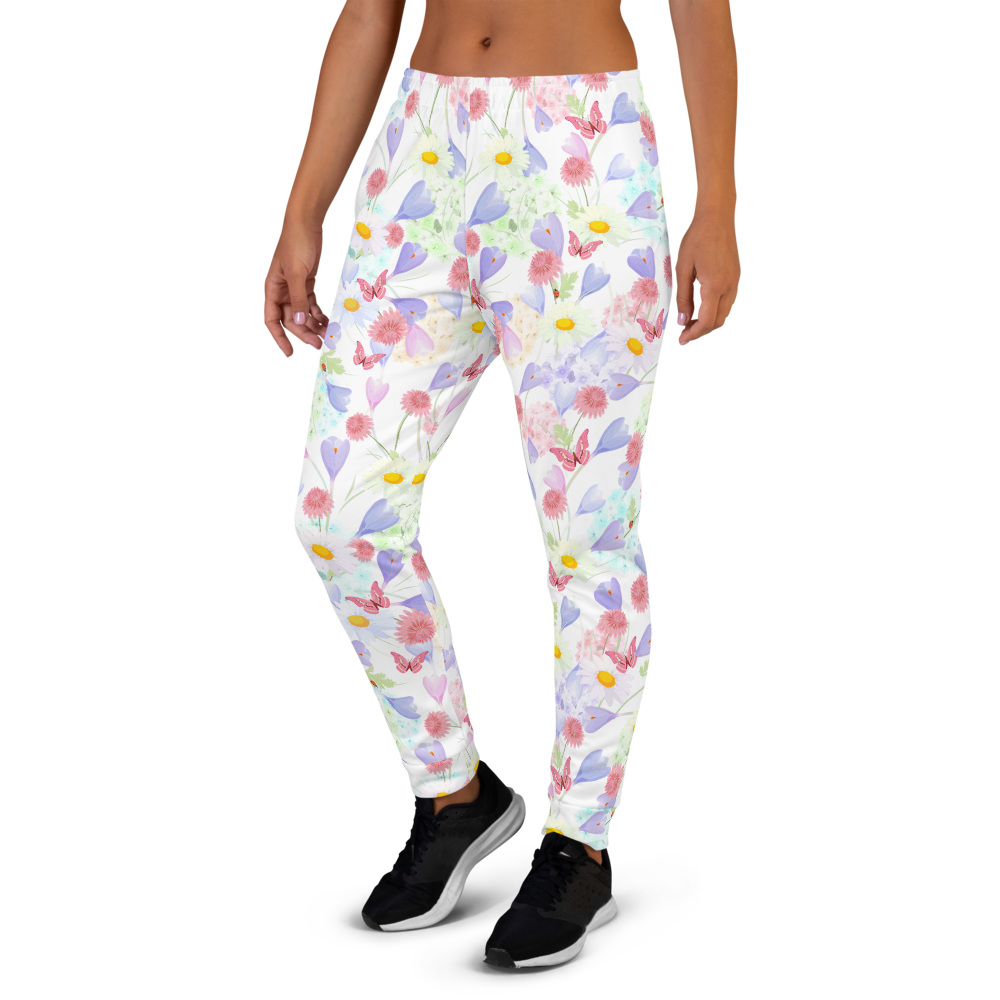 Women's Cute Flowers and Butterflies Joggers with Pockets, (XS-3XL) Relaxed Fit