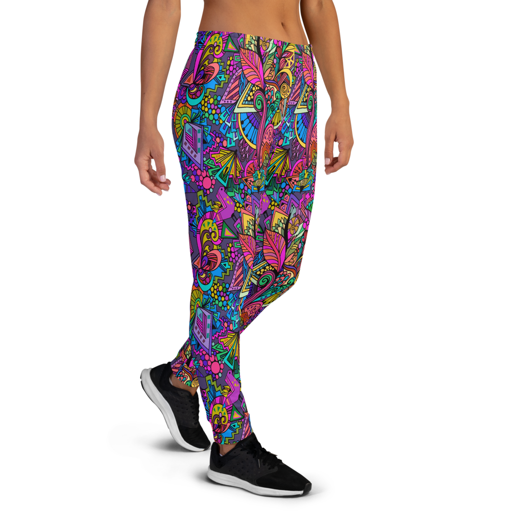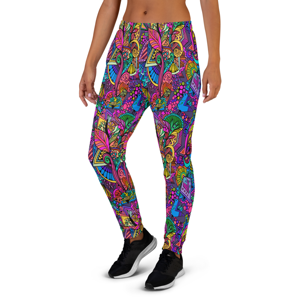 Women's Colorful Bright Flowers & Birds Gym Workout Jogger Pants with Pockets