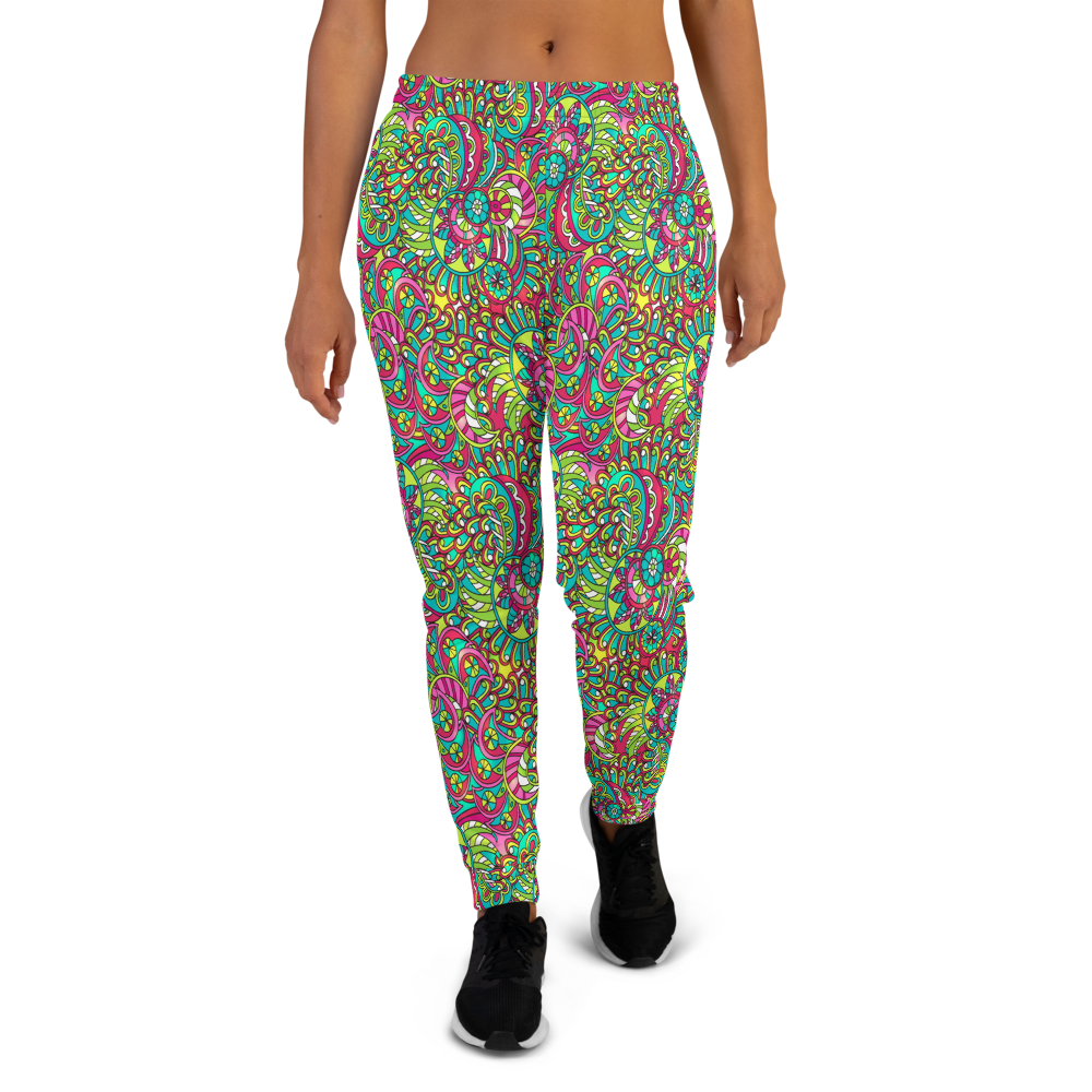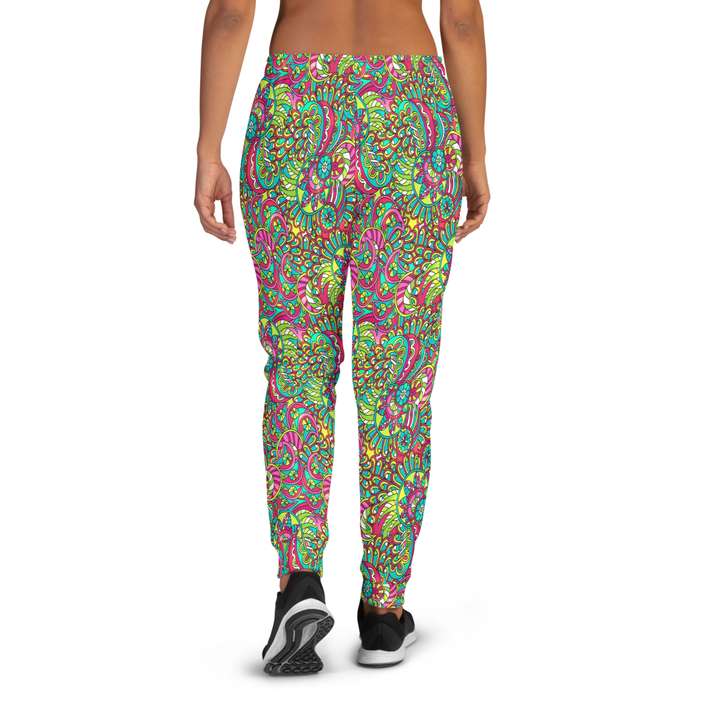 Women's Incredible Vibrant Colored Ornament Workout Jogger Pants with Pockets