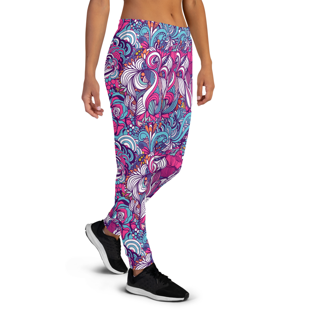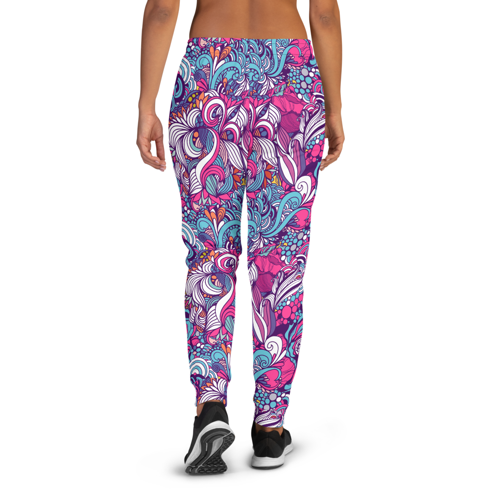 Women's Cute Bright Vintage Flower Pattern Gym Workout Jogger Pants with Pockets