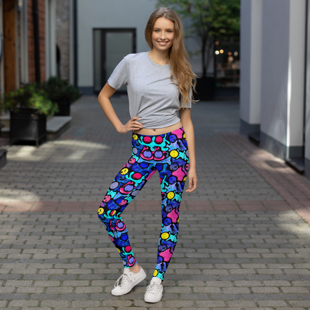 High Performance Glowing Psychedelic Style Leggings Outfit - So Durable Colorful Leggings