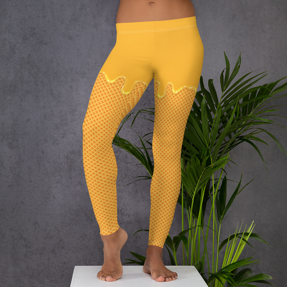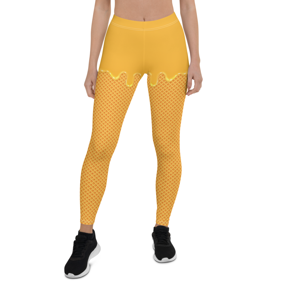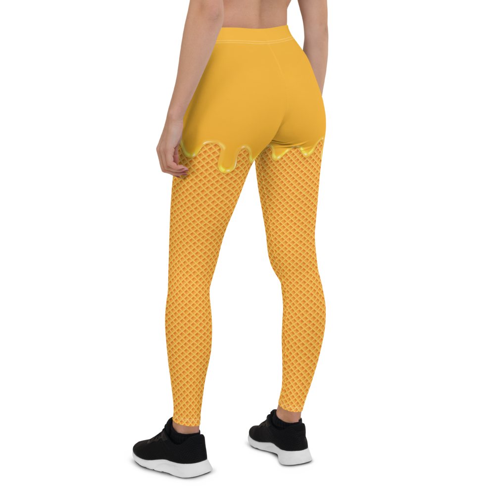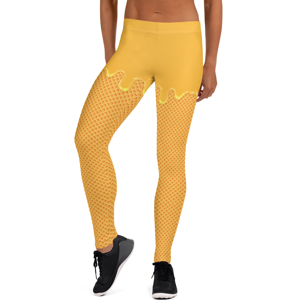 Honey Waffle Ice Cream Leggings - Melting Ice Cream Drip Leggings