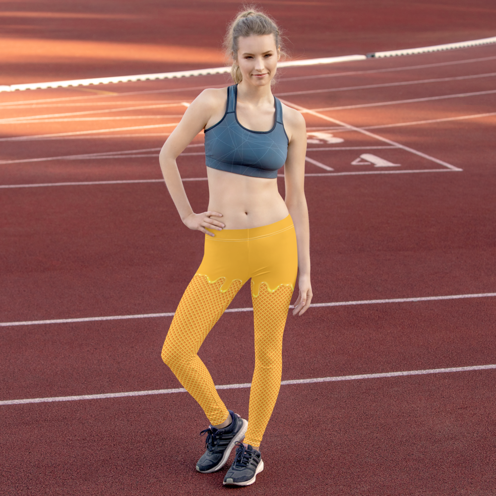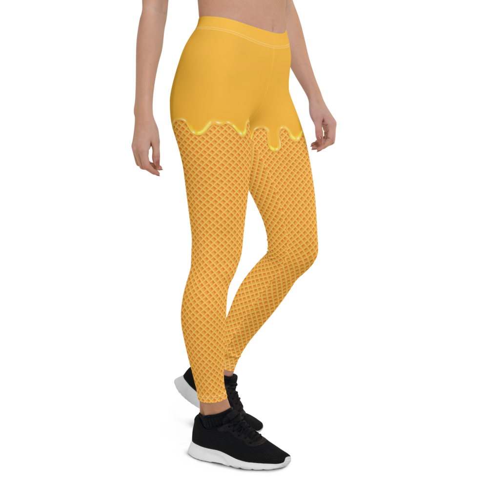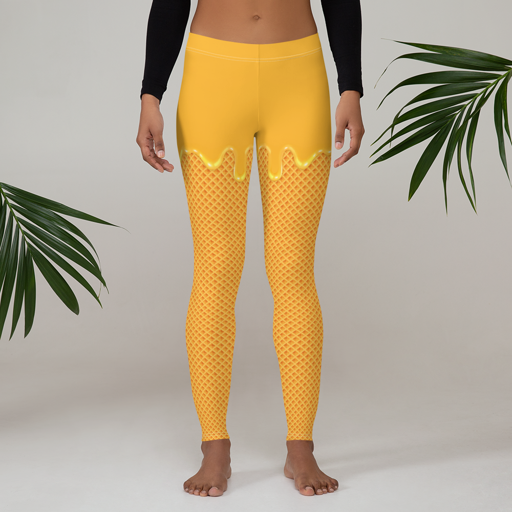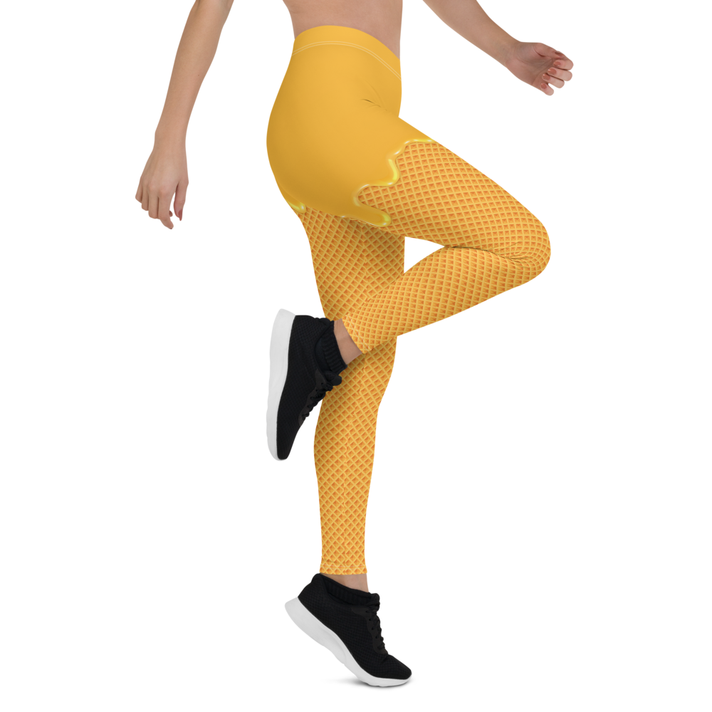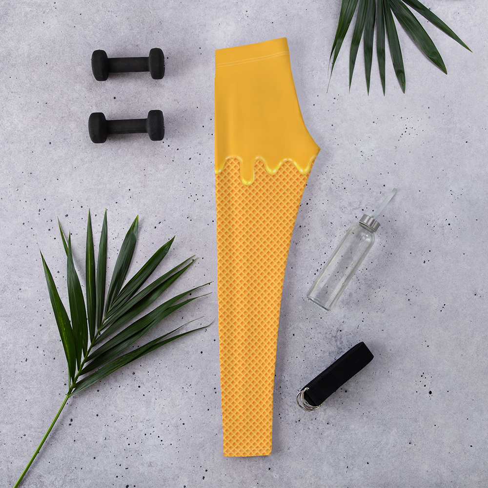 Honey Waffle Ice Cream Leggings - Melting Ice Cream Drip Leggings