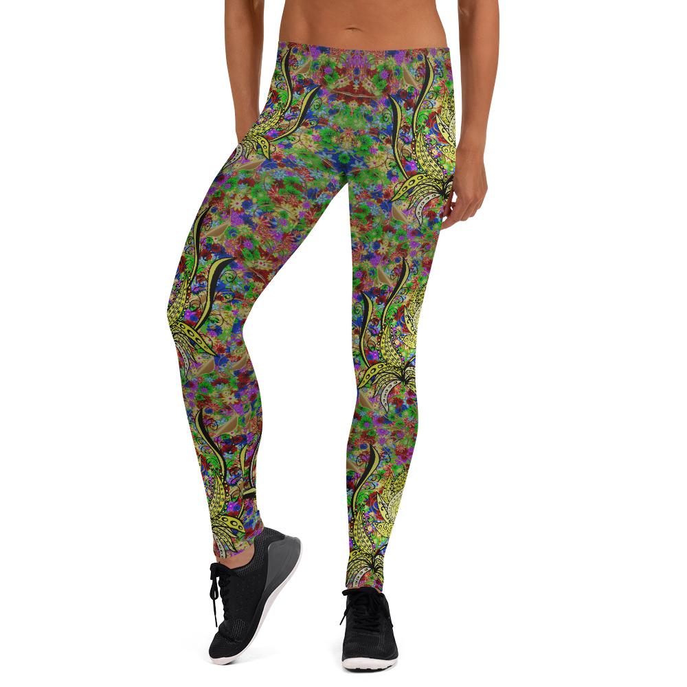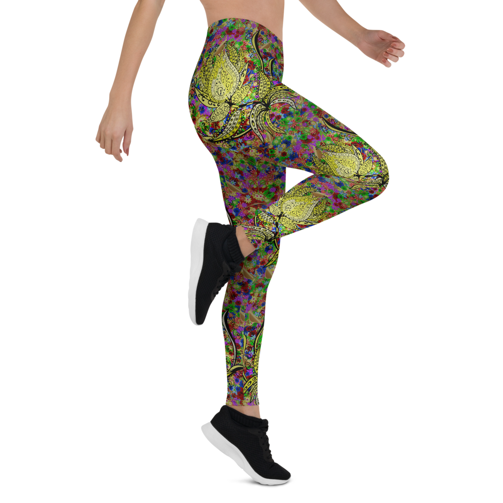 Lotus Flower Pattern Leggings, colorful Lotus Yoga Pants, Lotus Printed Leggings