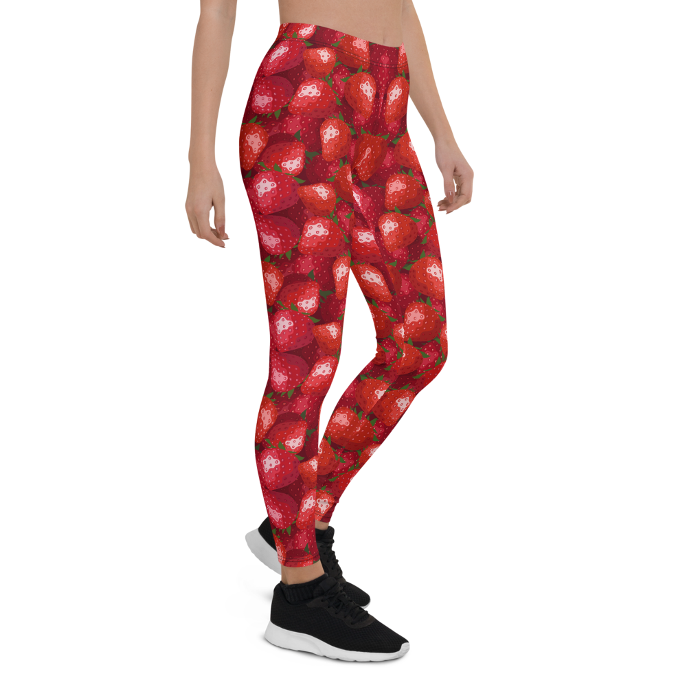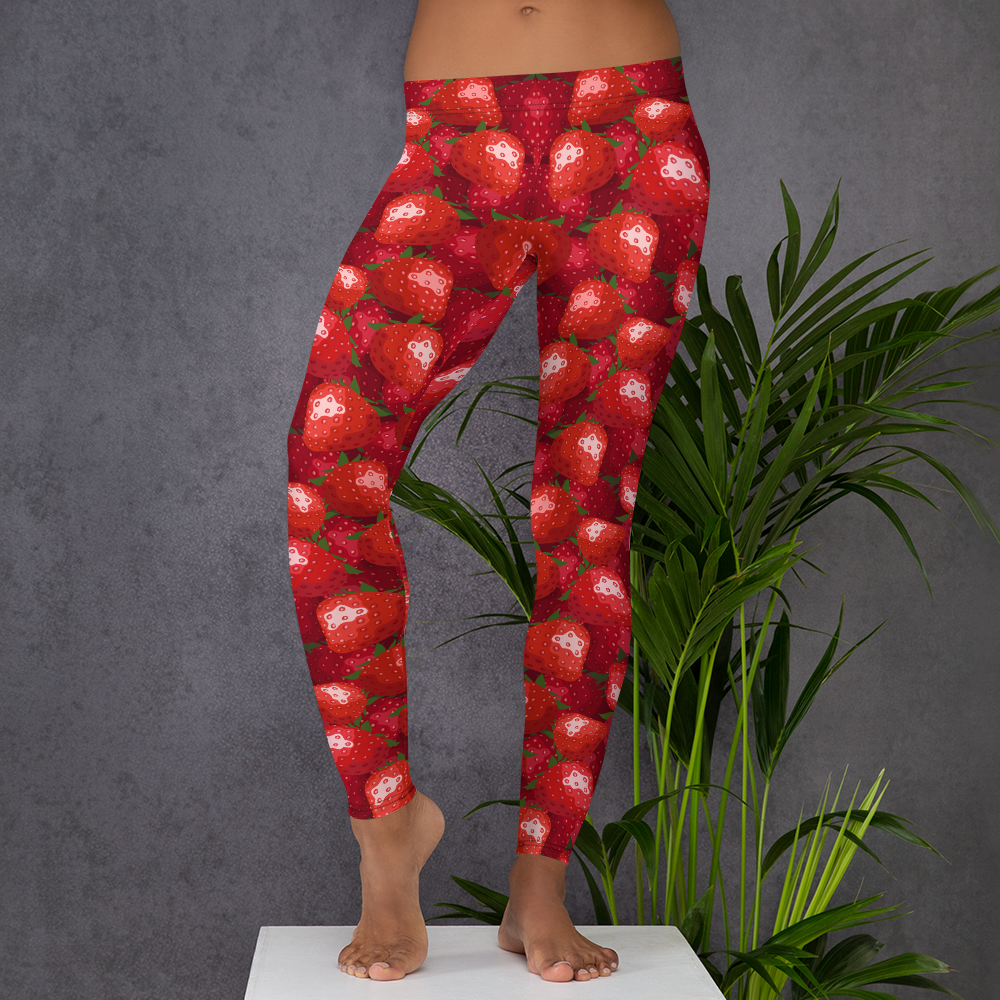 Strawberry Women's Yoga Workout Leggings, Juicy Fruit Leggings, Workout Leggings