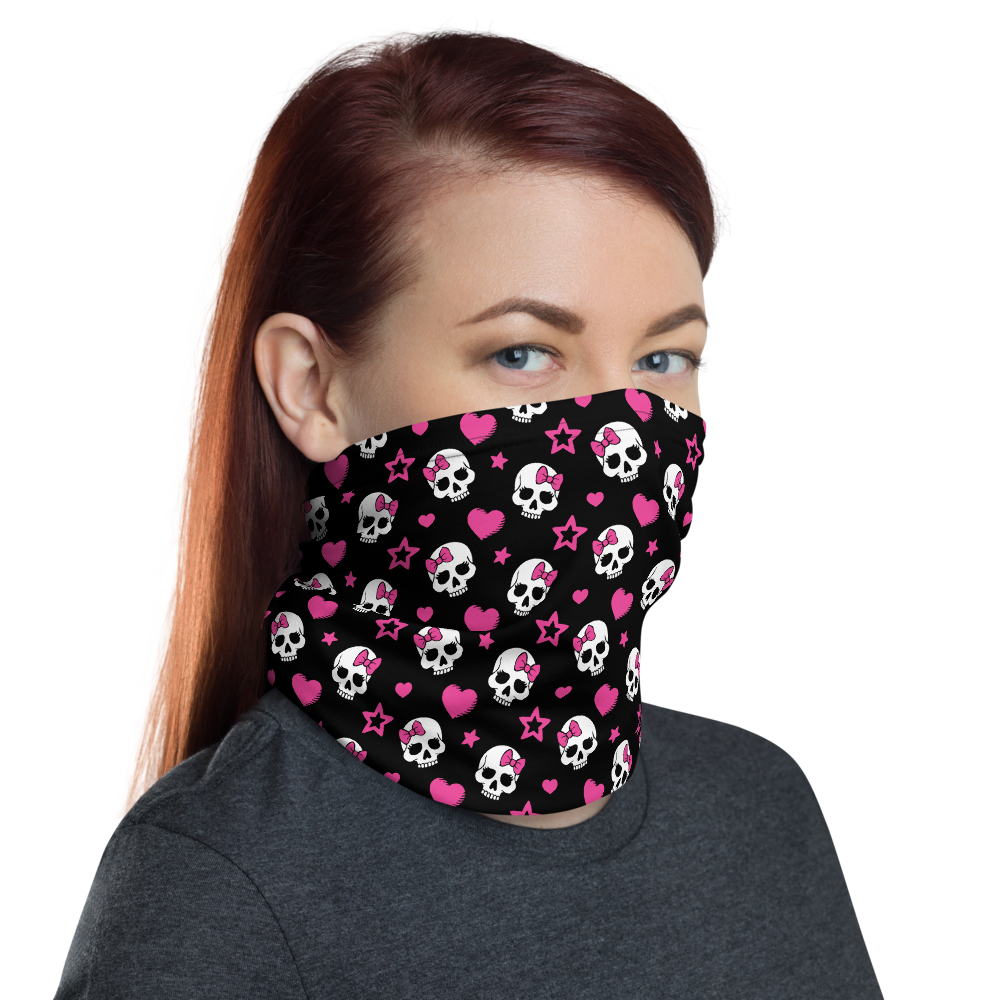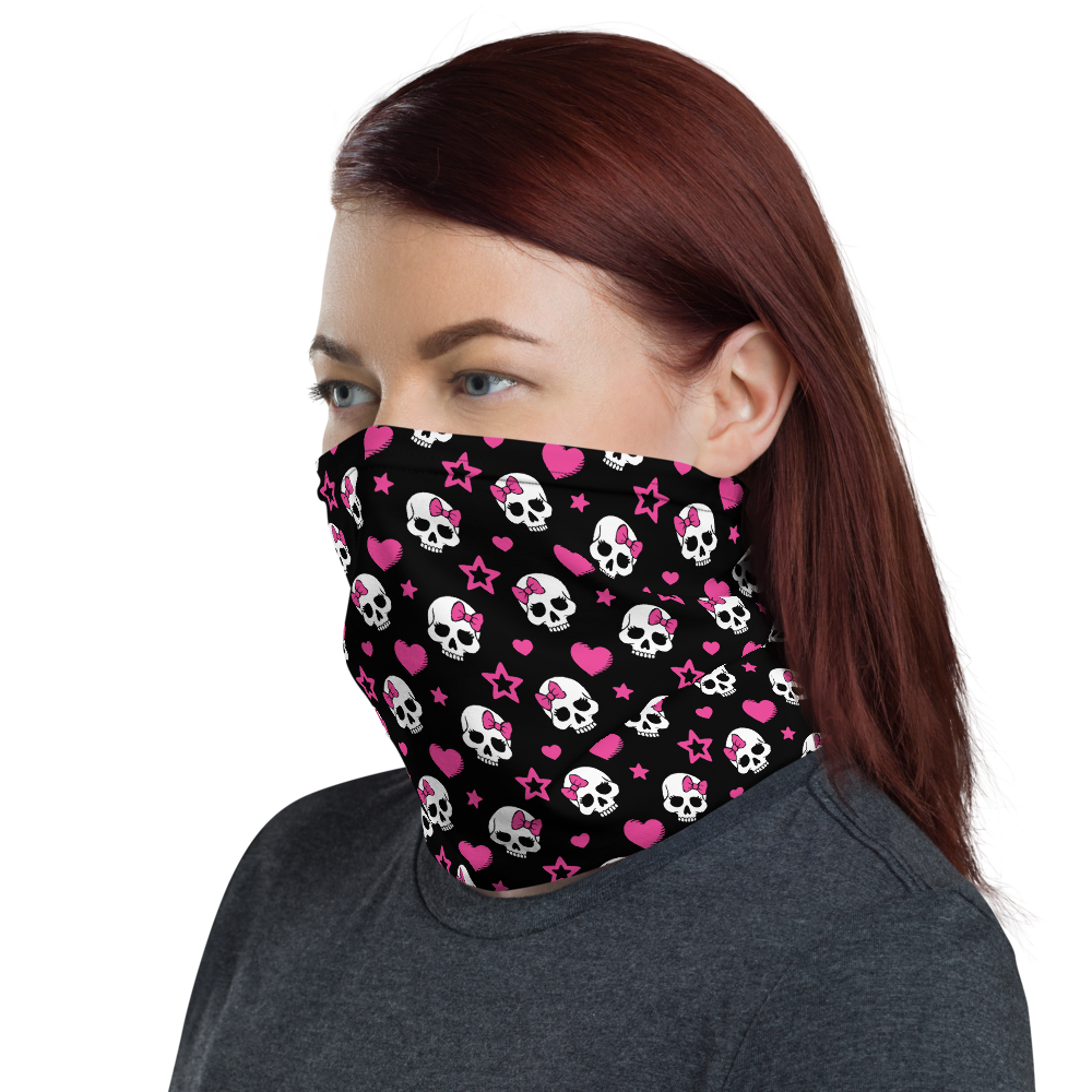 New Protective Pink Hearts and Skulls Face Mask, Neck Gaiter, Headwear , Bandana