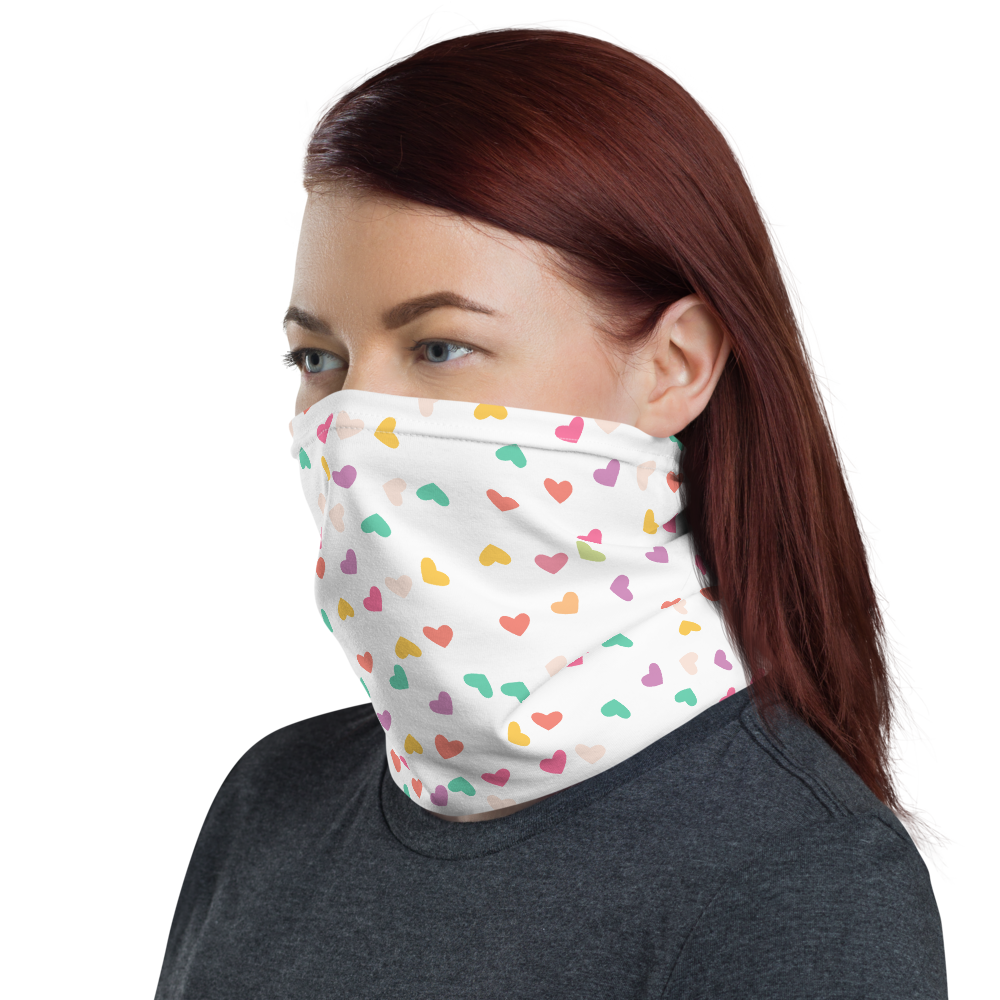 Washable & Reusable Candy Hearts Protective Face Mask, Bandanna, Scarf, Neck Gaiter, Headwear, Headband Hair Cover, Mouth Cover, Nose Cover, Scarves
