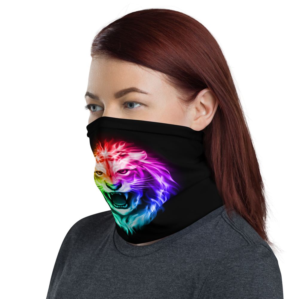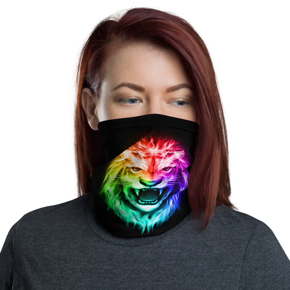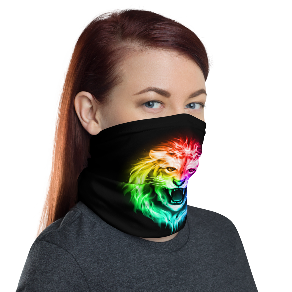 New Rainbow Colored Lion Head - King of Fire Face Mask, Bandanna, Scarf, Neck Gaiter, Headwear, Headband Hair Cover, Mouth Cover, Nose Cover, Scarves