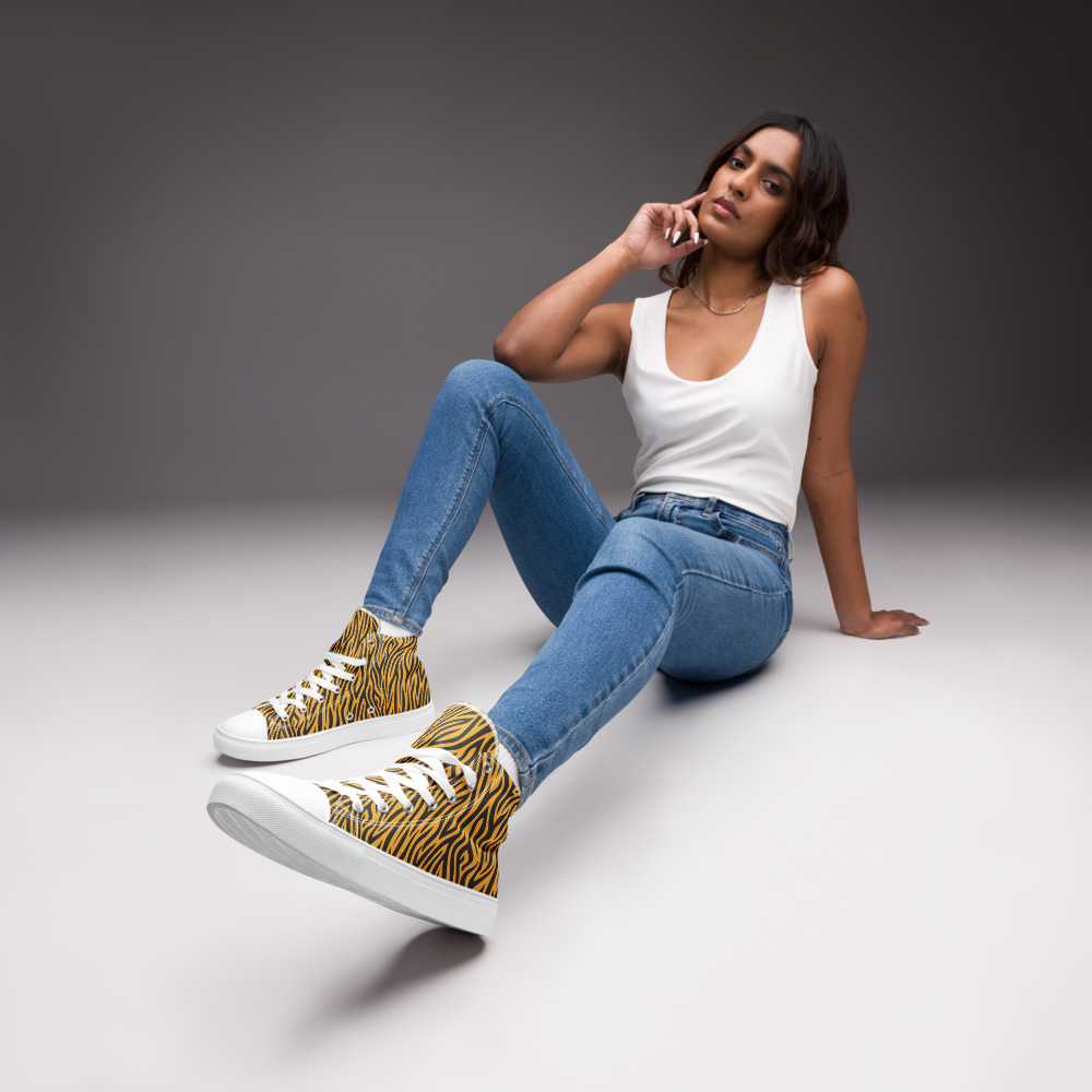 Tiger Print Women’s high top canvas shoes - Animal Print Shoes